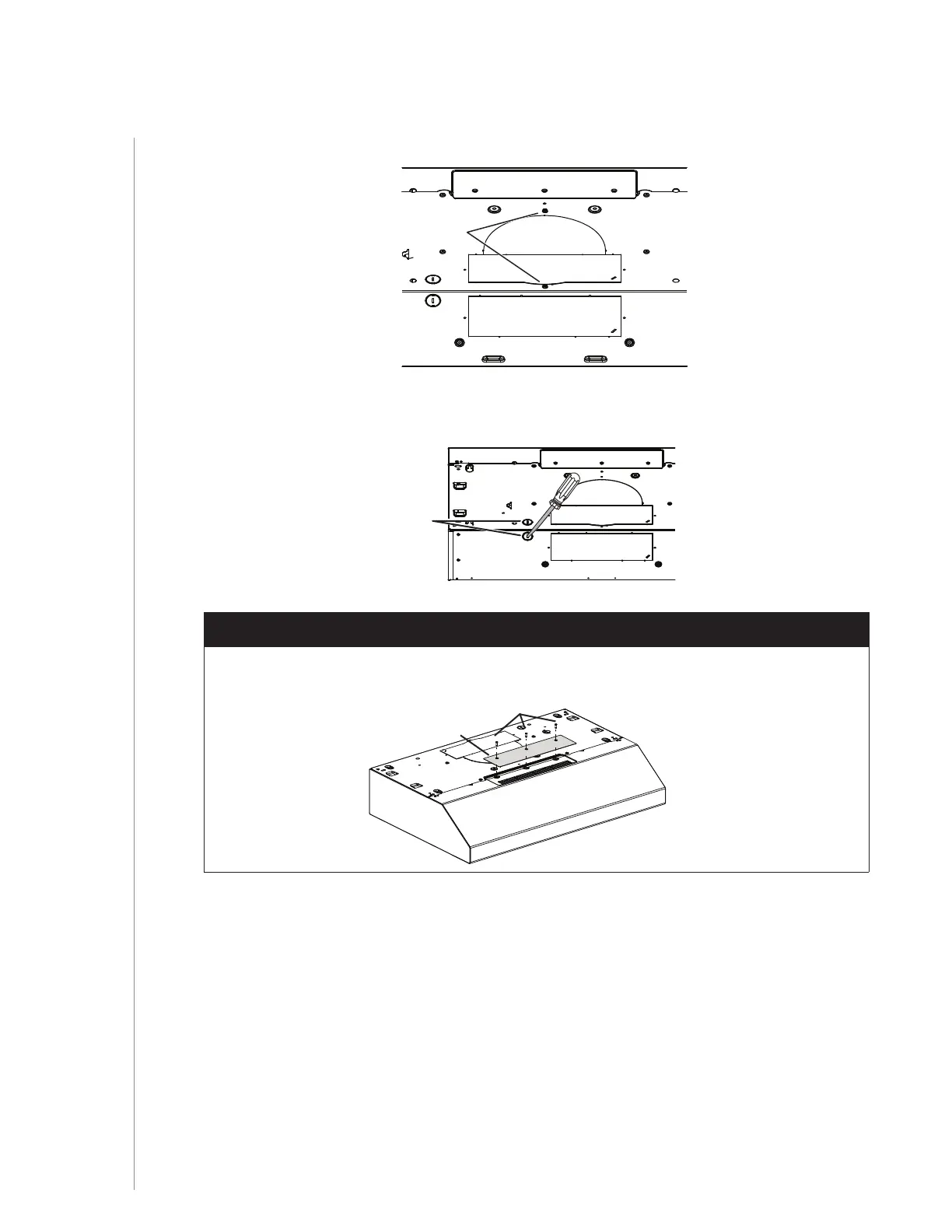 5 ] Retirer les deux vis du dessus de la hotte (voir l’illustration ci-dessous). Garder les vis pour