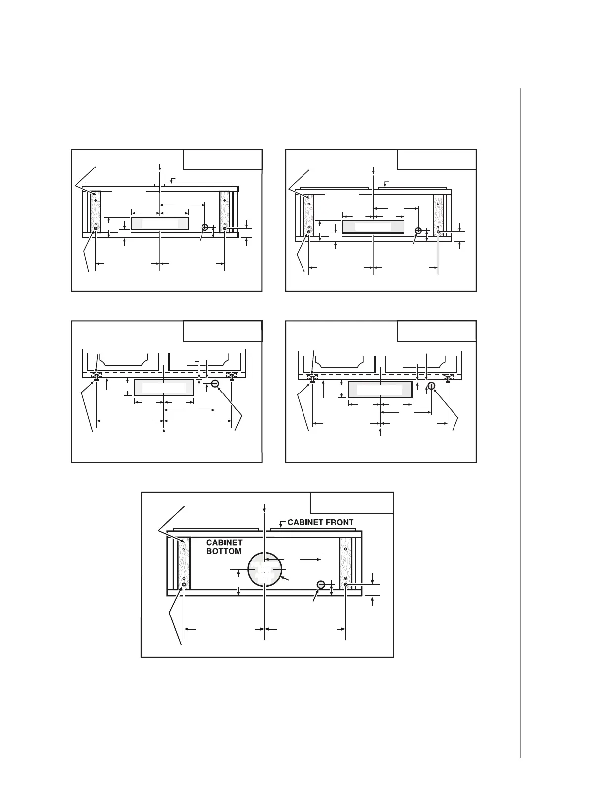 1 ] Use the proper diagram below for placement of ductwork and electrical cutout in cabinet