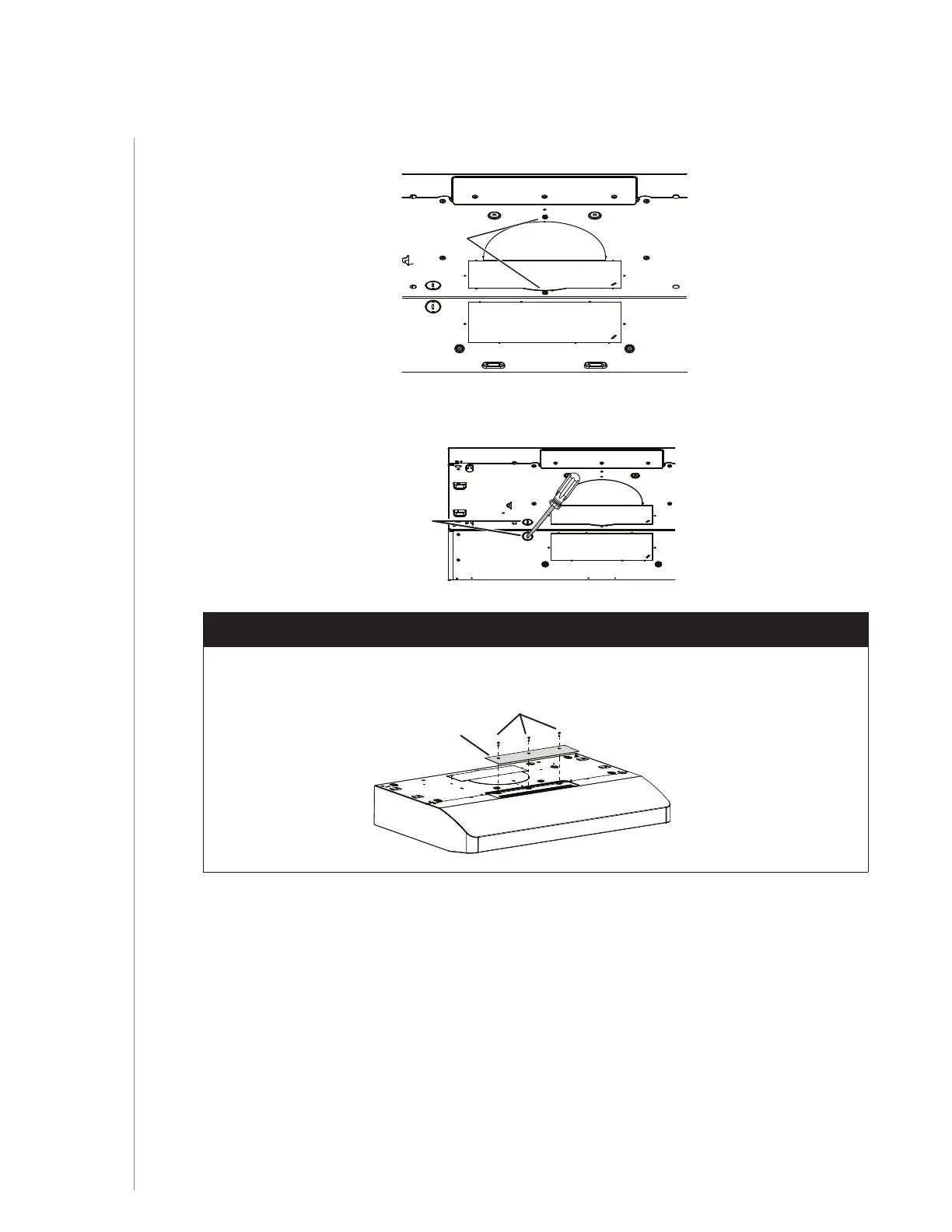 5 ] Retirer les deux vis du dessus de la hotte (voir l’illustration ci-dessous). Garder les vis pour