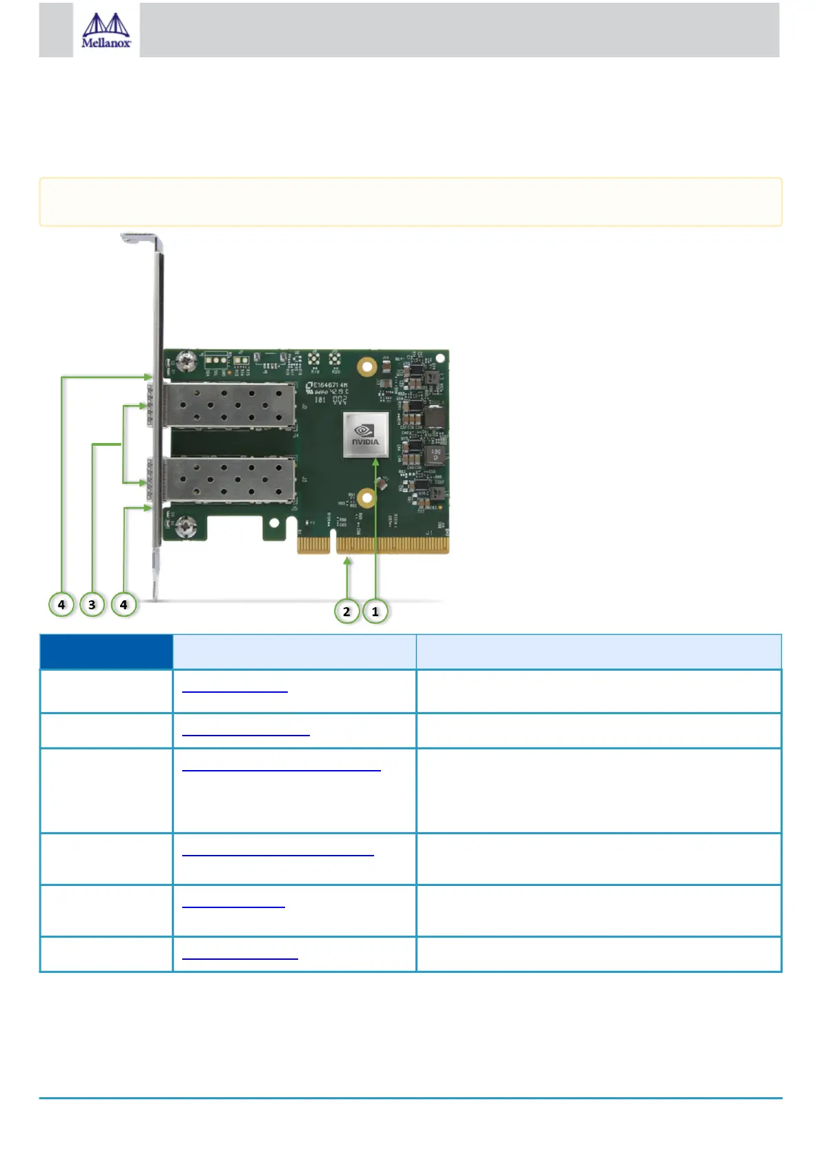 he below figure show the component side of the Mellanox ConnectX-6 Lx adapter card. Each numbered interface that is referenced