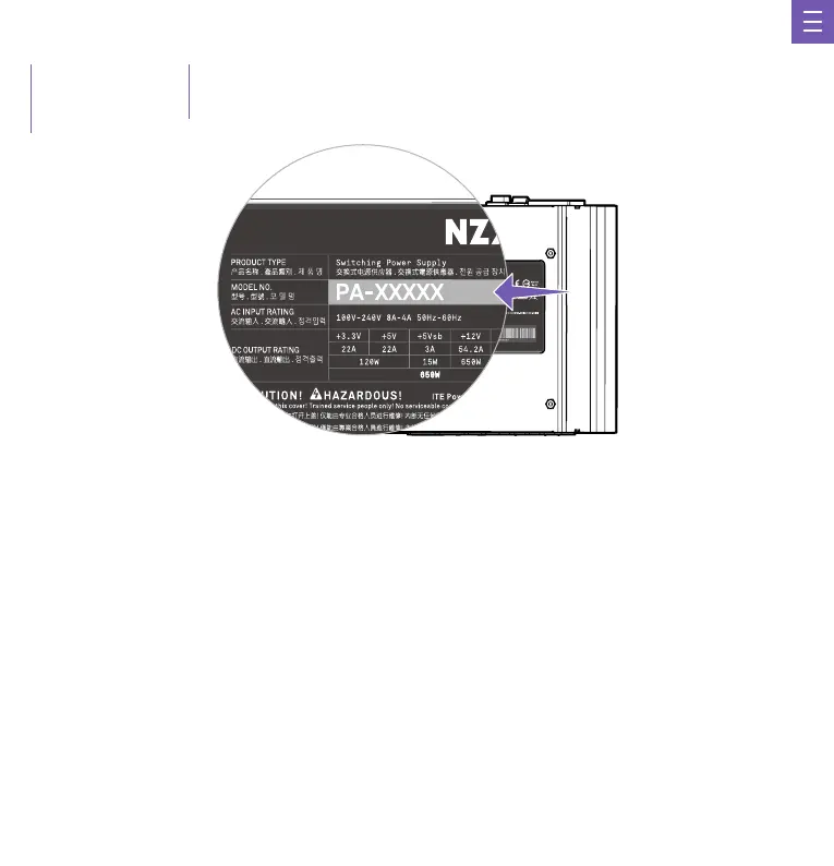 NZXT's PSU com número de modelo NP-xxxxx. *Faça referência à imagem para encontrar o número do modelo.