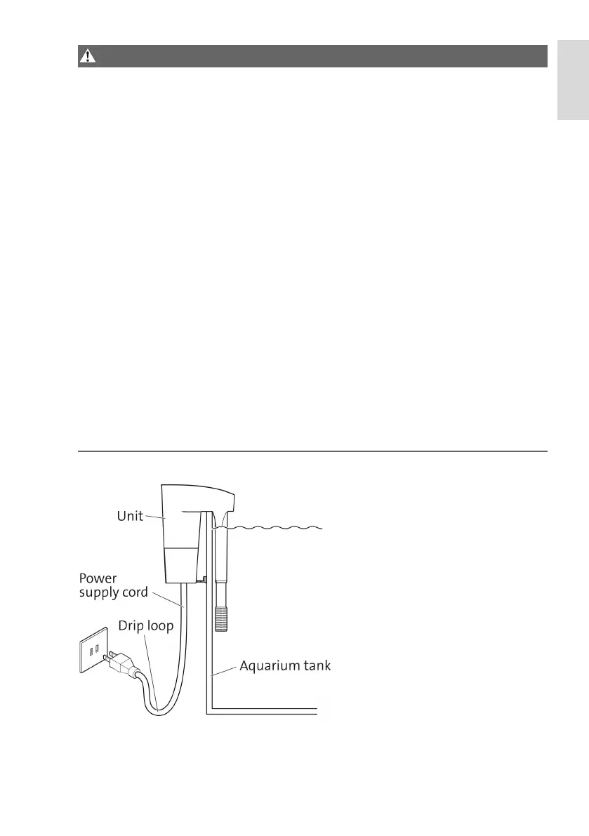 To avoid the possibility of the unit plug or receptacle getting wet, position aquarium