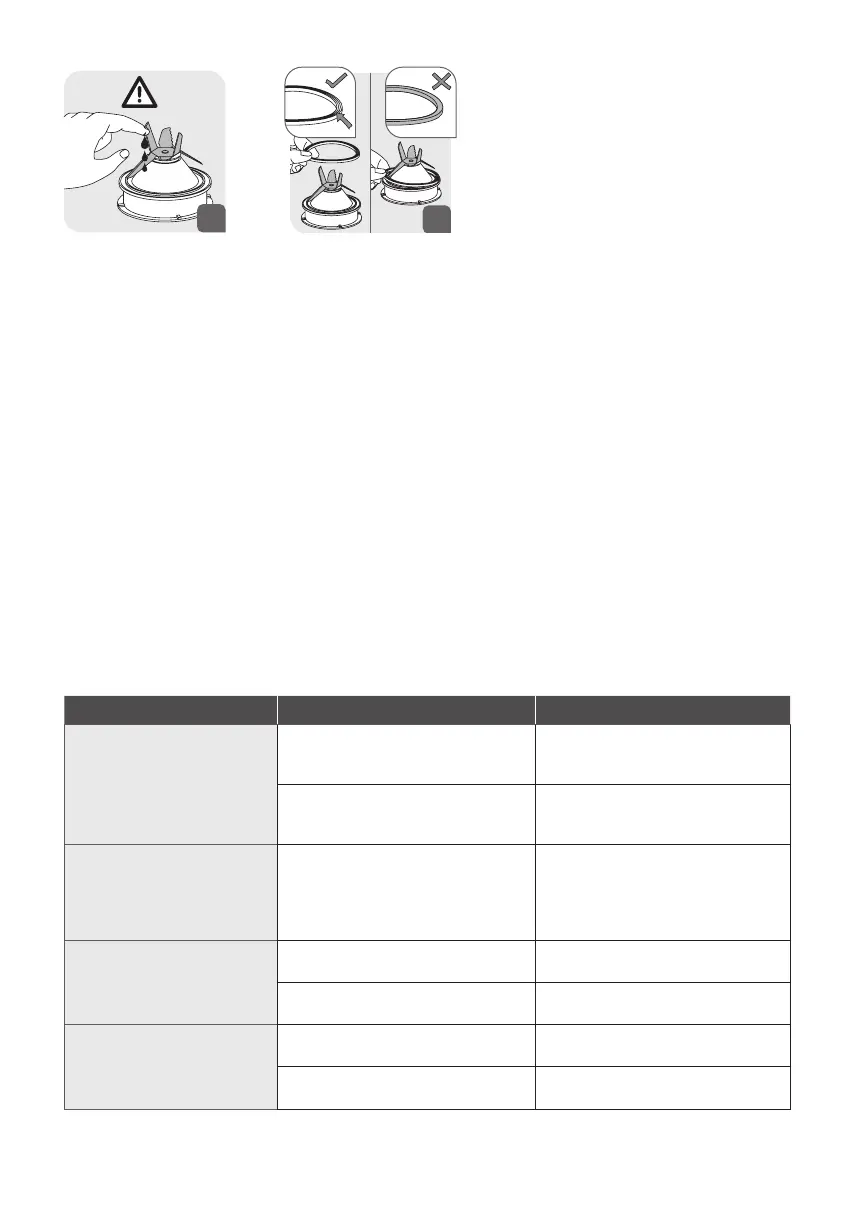 • Huomaa: Jos tiiviste asetetaan paikalleen väärin, aineksia voi vuotaa