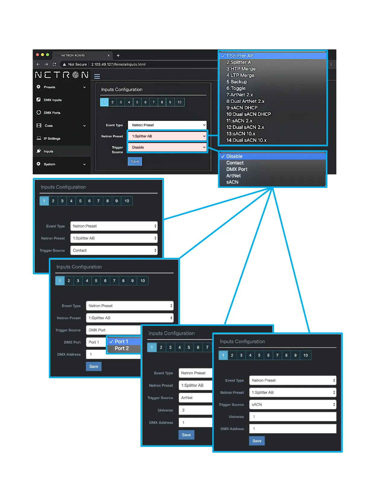 WEB REMOTE MENU: INPUTS NETRON PRESET