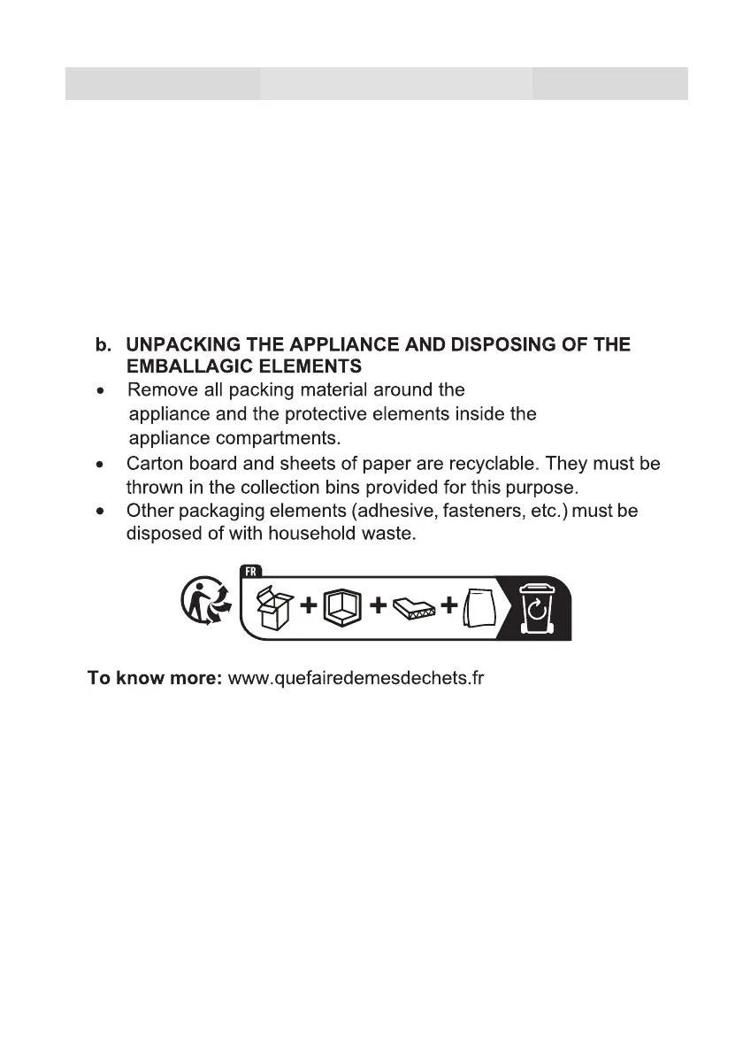 Do not lift the appliance by the door handle. Do not put the unit in a fully