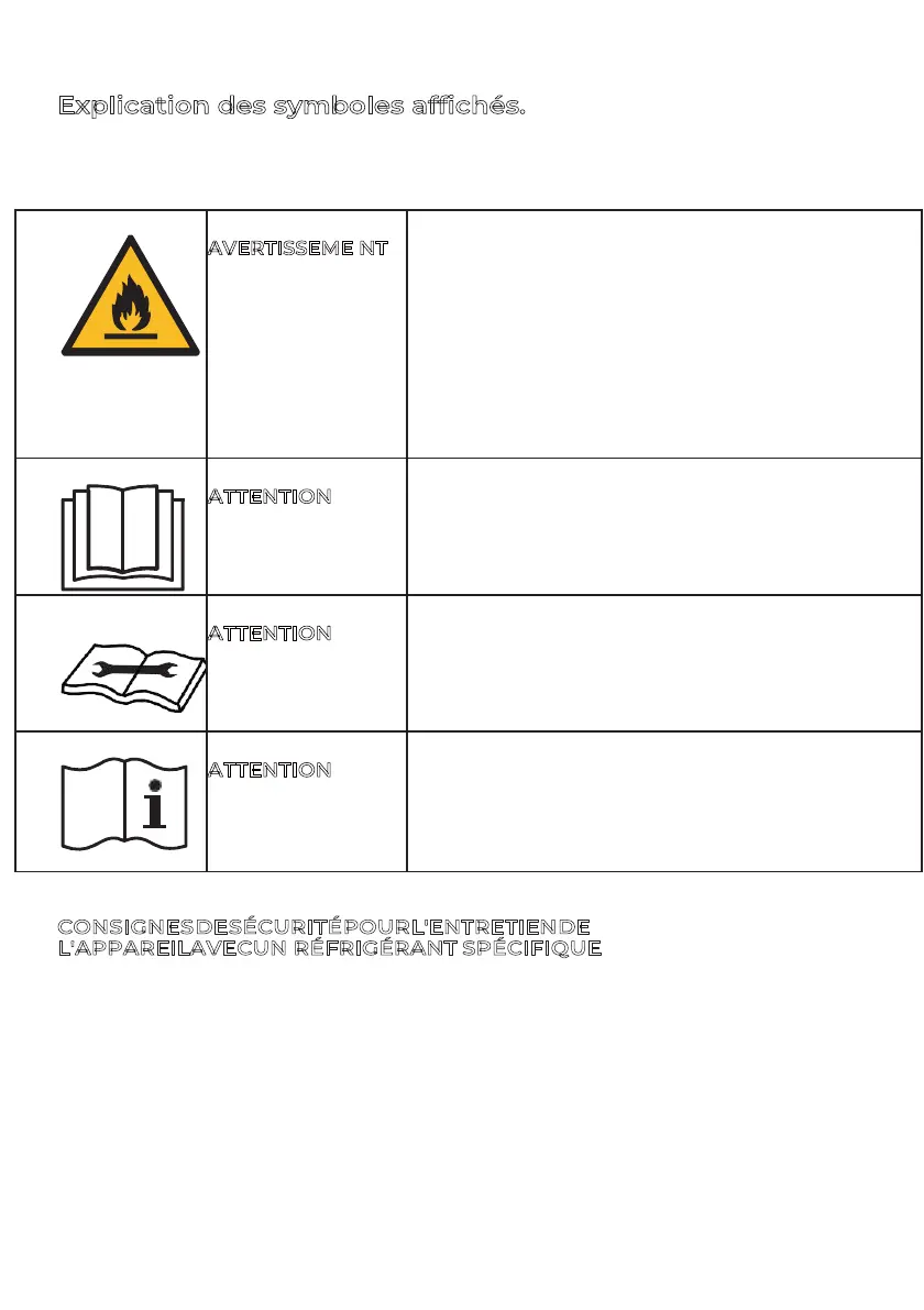 L'APPAREILAVEC UN RÉFRIGÉRANT SPÉCIFIQUE