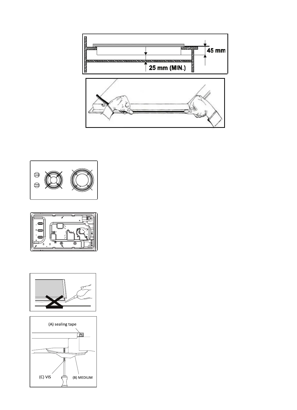 • You must be a gap of at least 25 mm and at most 74 mm between the bottom of the