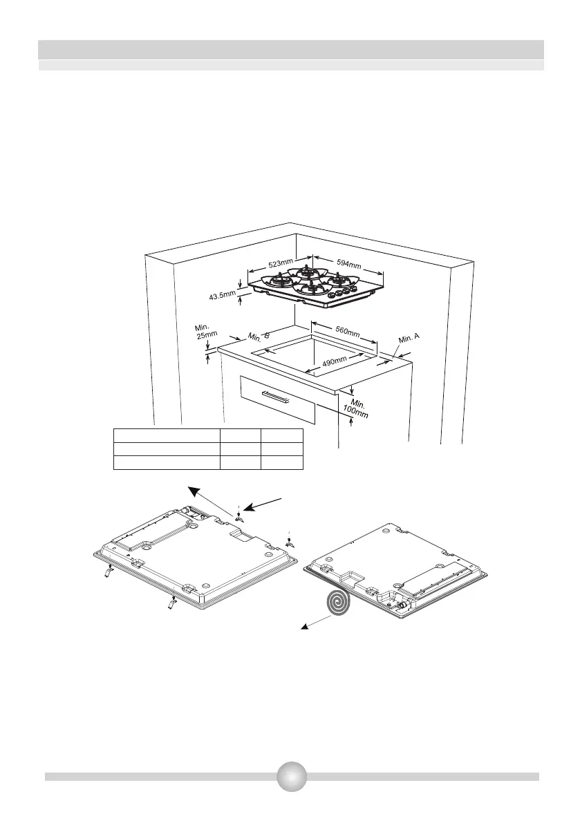 opening in the top of your kitchen unit that corresponds to the measurements given in figure. Apply