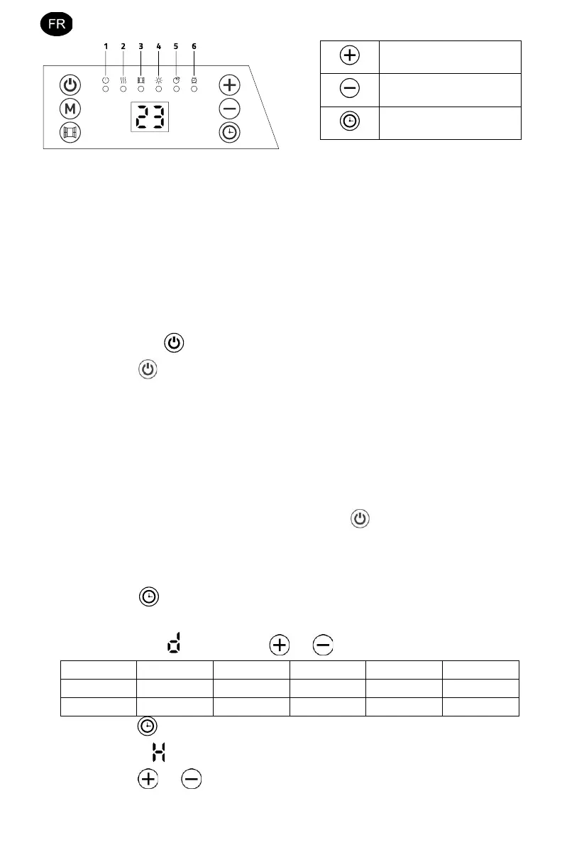 - Appuyez sur pour confirmer le réglage du jour et entrez le réglage de l’heure :