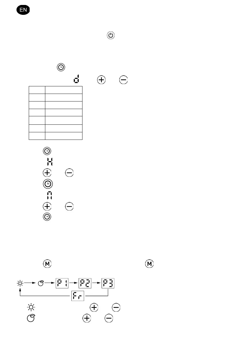 - Press to confirm day setting and enter the clock hour setting, with the screen