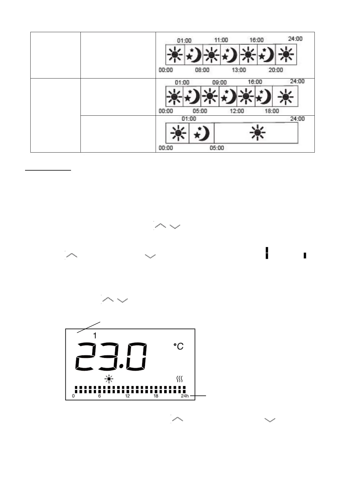 For example: to select the day 1, temperature of 23℃, comfort mode for 24 hours: