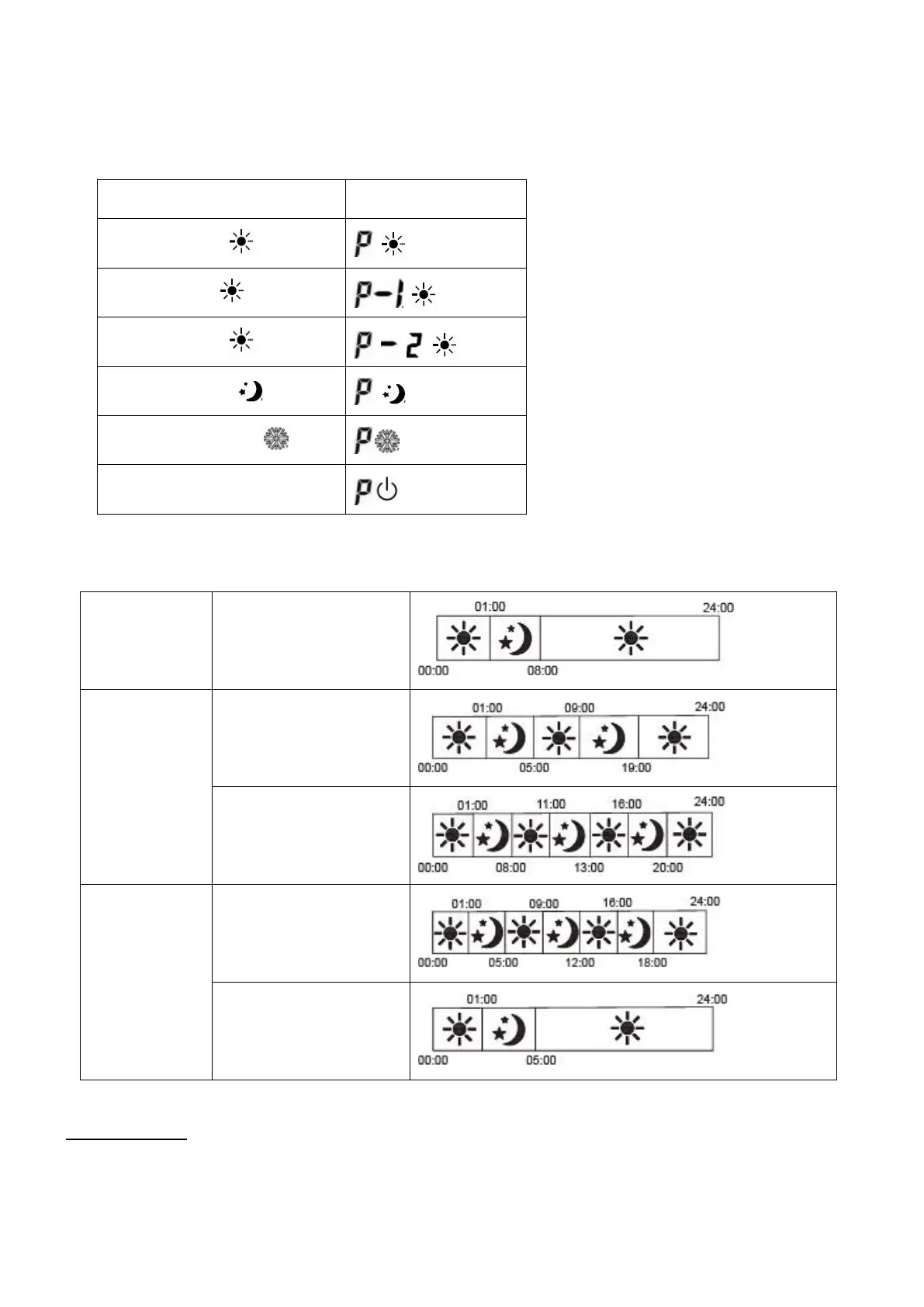 In Pilot wire mode P, set the heating using the external timer. When the external programmer is set