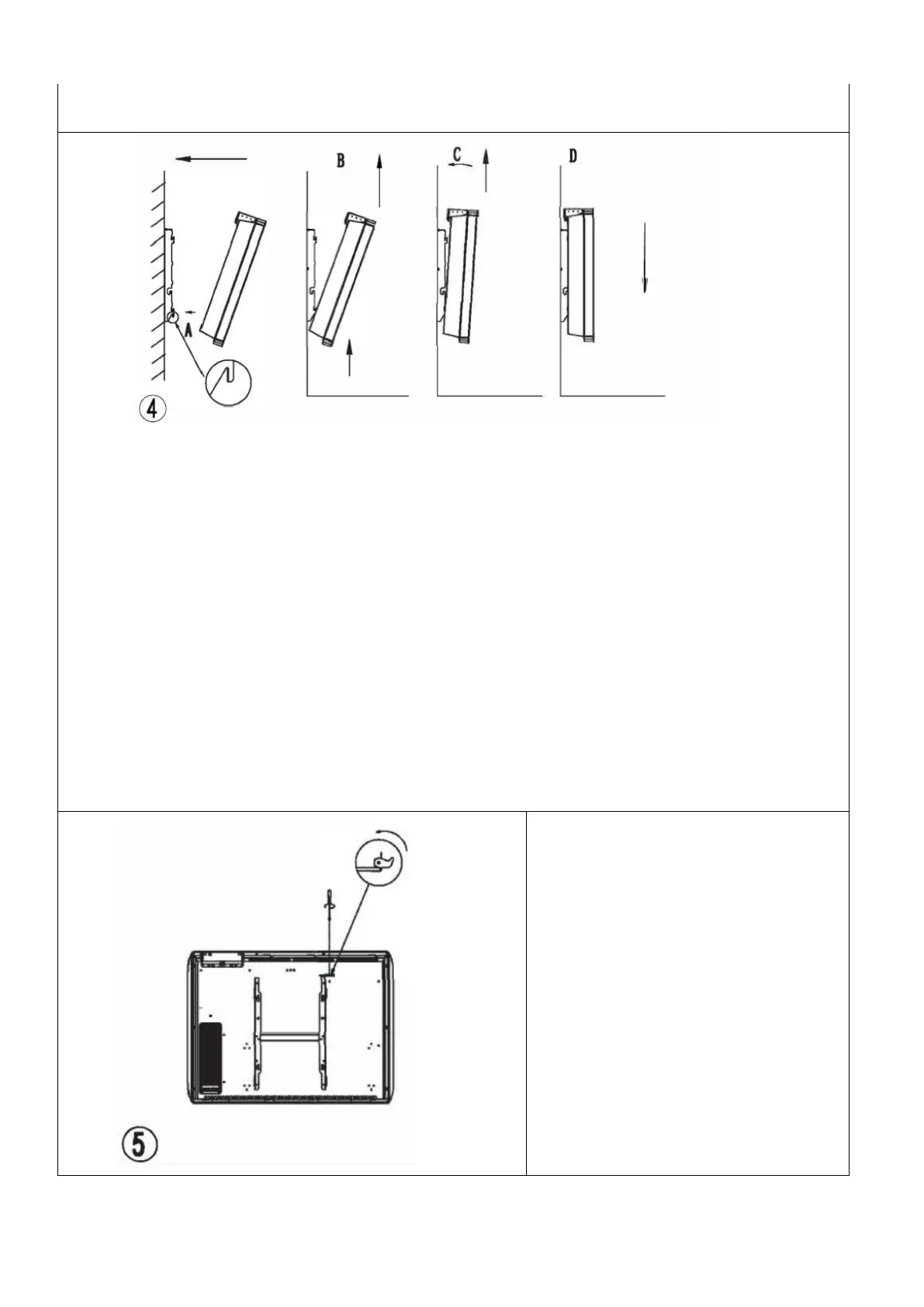 B: Poussez le chauffage vers le bas jusqu'à ce que les crochets