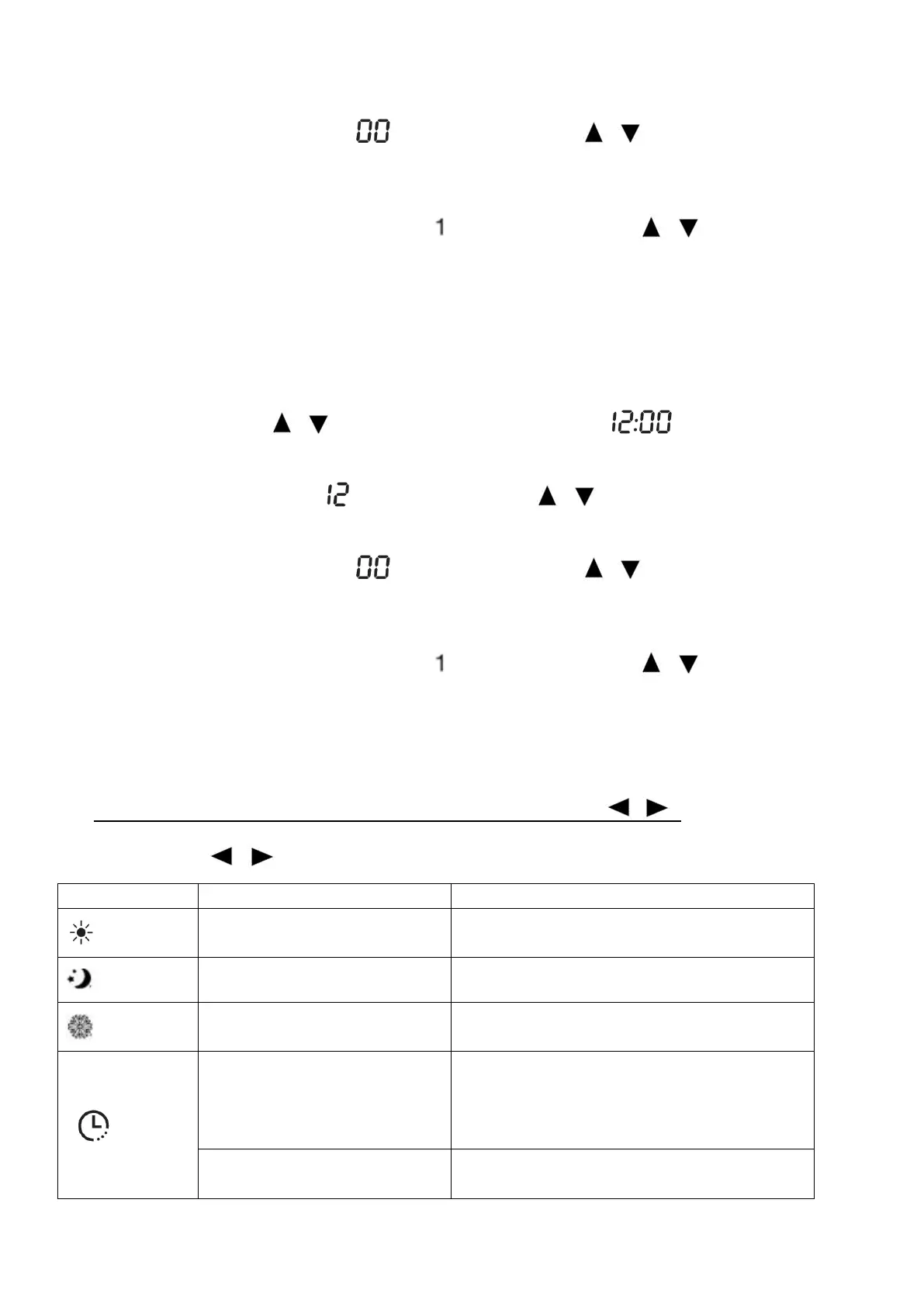 ⚫ Pour régler l'heure lorsque clignote: appuyez sur / pour ajuster entre 00 et 23