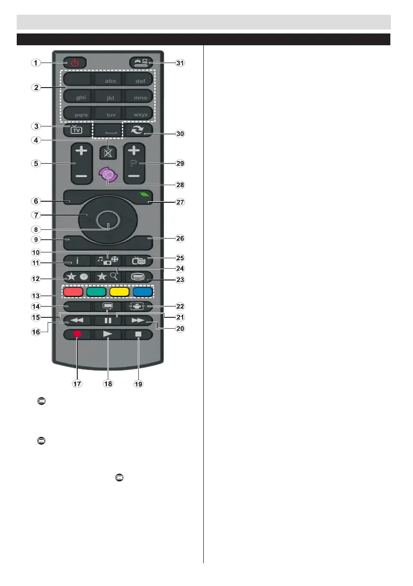 23. Text: Displays teletext (where available), press again