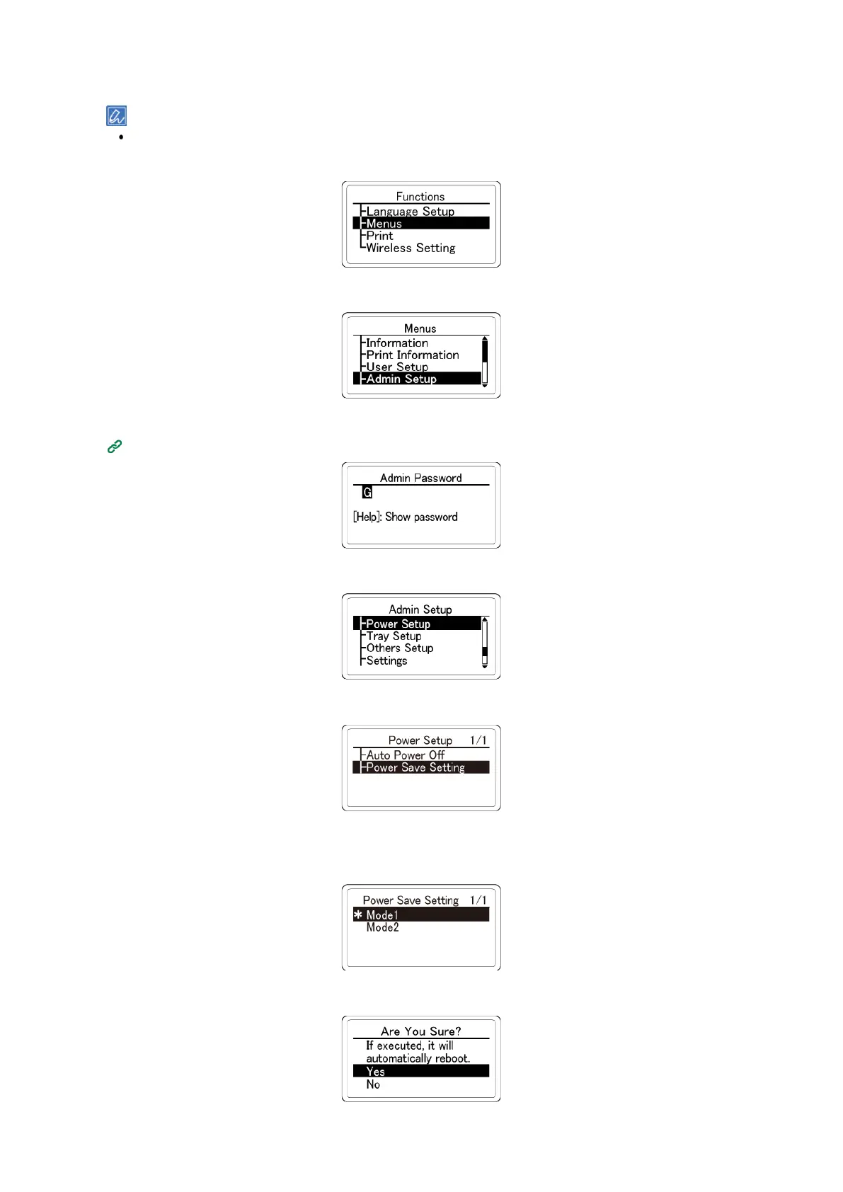Press ▼ several times to select [Power Save Setting], and then press «OK».