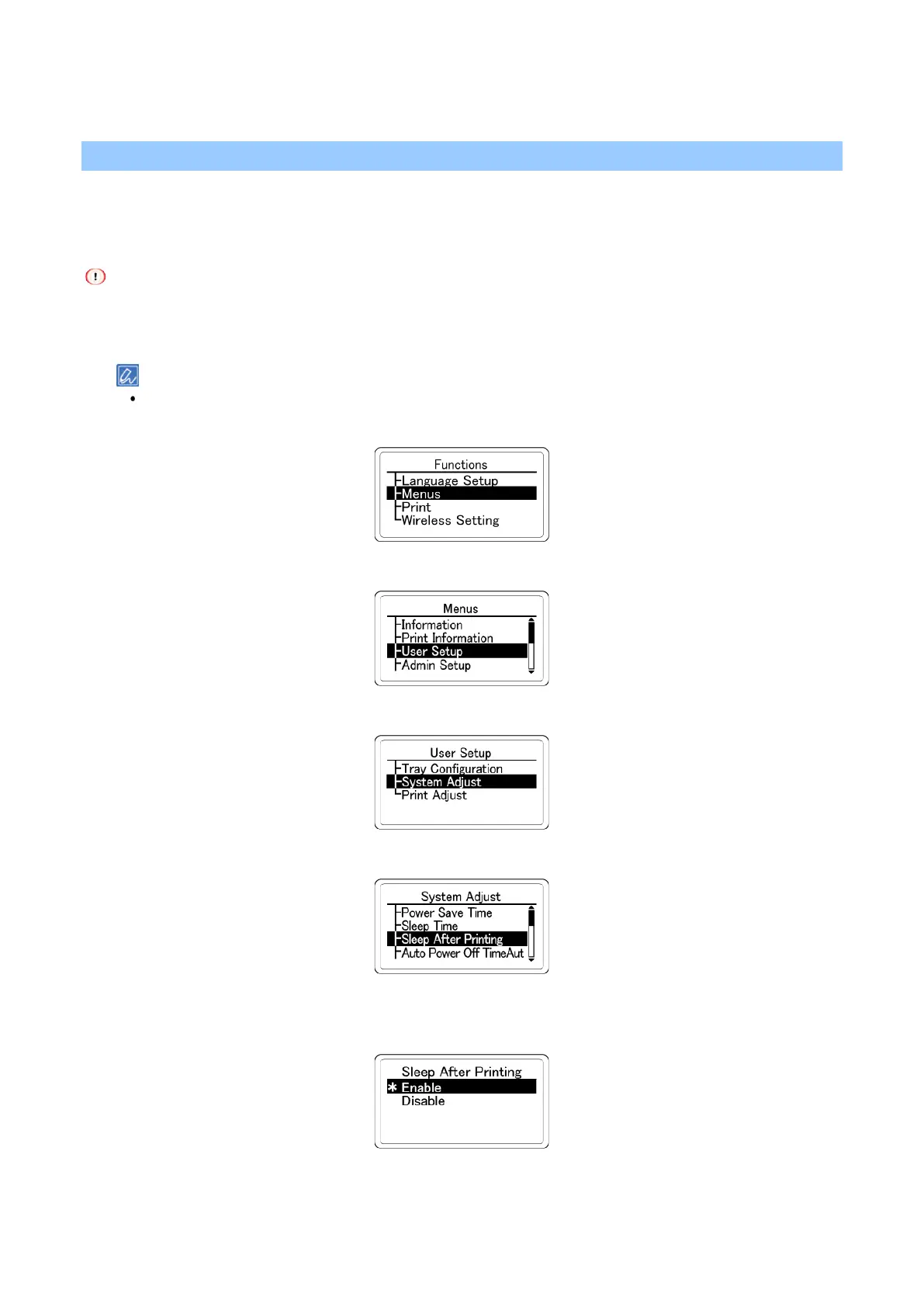 [Disable]: The machine does not enter the sleep mode right after printing.
