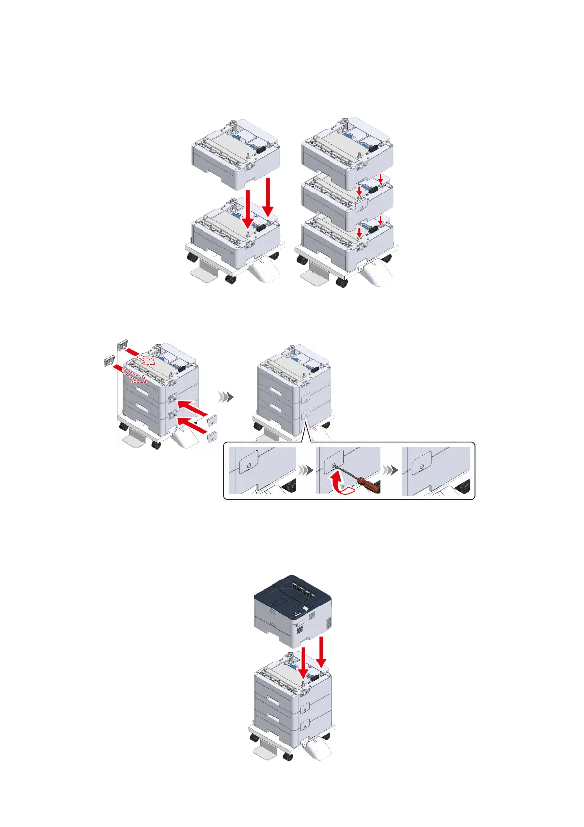 installed, and gently stack them so that the holes on the bottom and the protrusions are aligned.