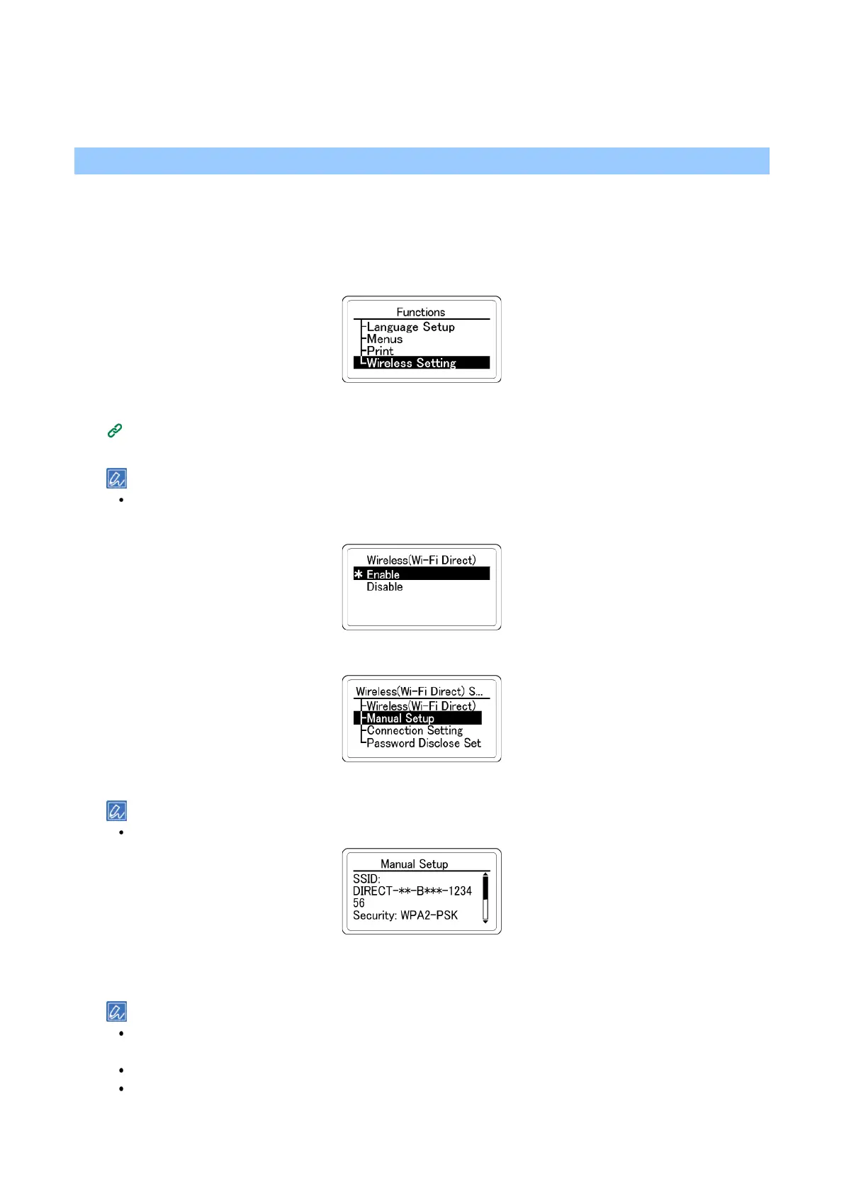 enable [Wireless(Wi-Fi Direct)], press «OK» to set [Wireless(Wi-Fi Direct)] to [Enable].