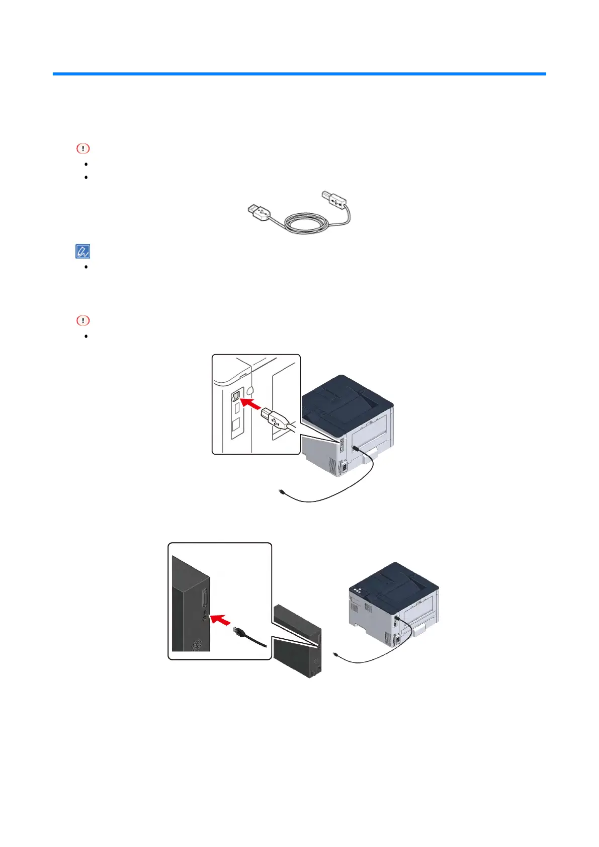 Do not insert the USB cable into the network interface connector. Otherwise, malfunction may be caused.