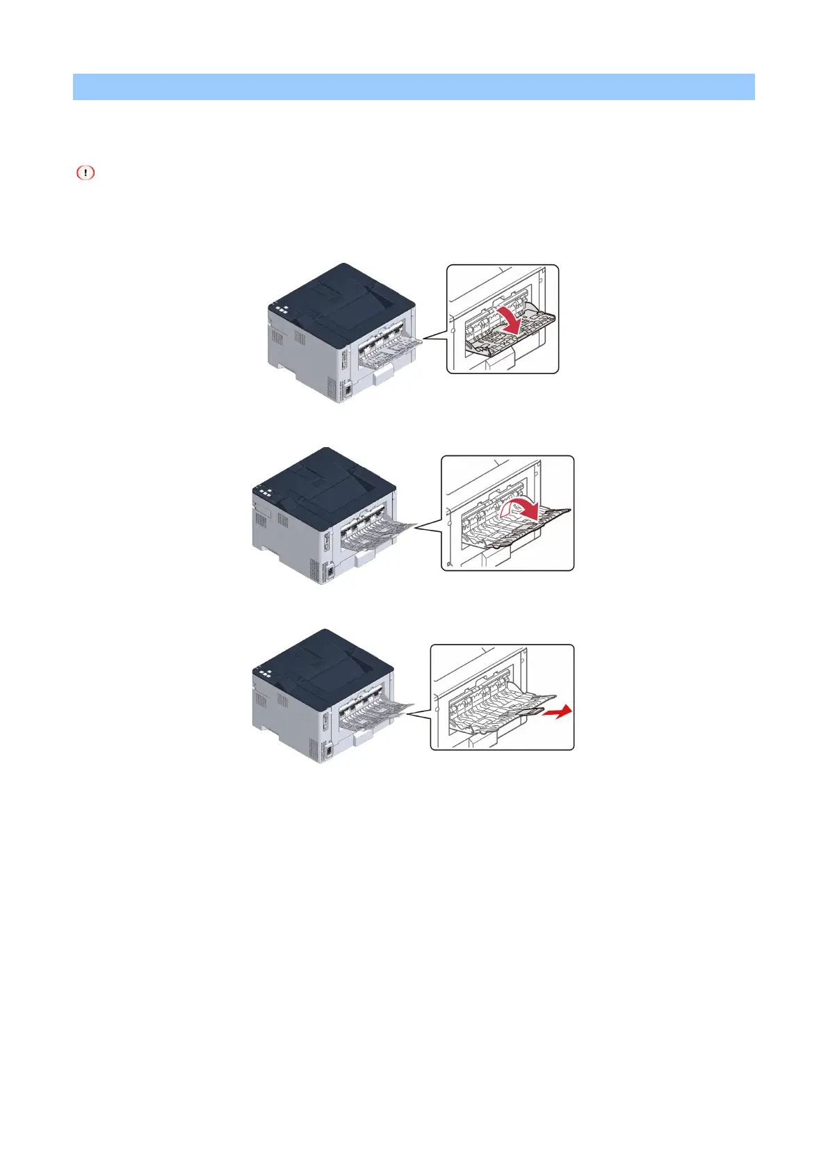 Open the output tray by putting your fingers in the recess on the back of this machine.
