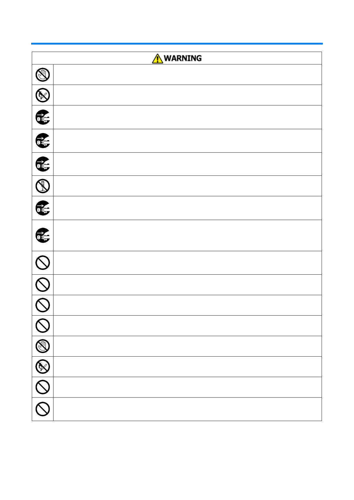If paper clips or any other foreign objects enter the inside of this machine, disconnect the power plug from the