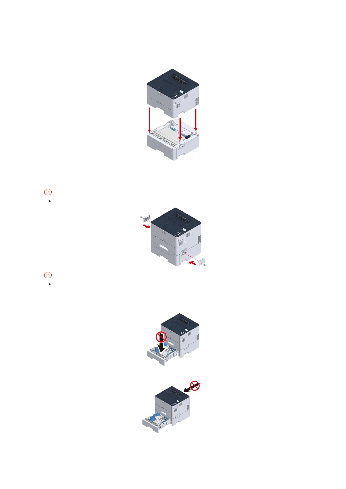 After stacking the expansion trays, do not push the main unit left, right, back or forth.
