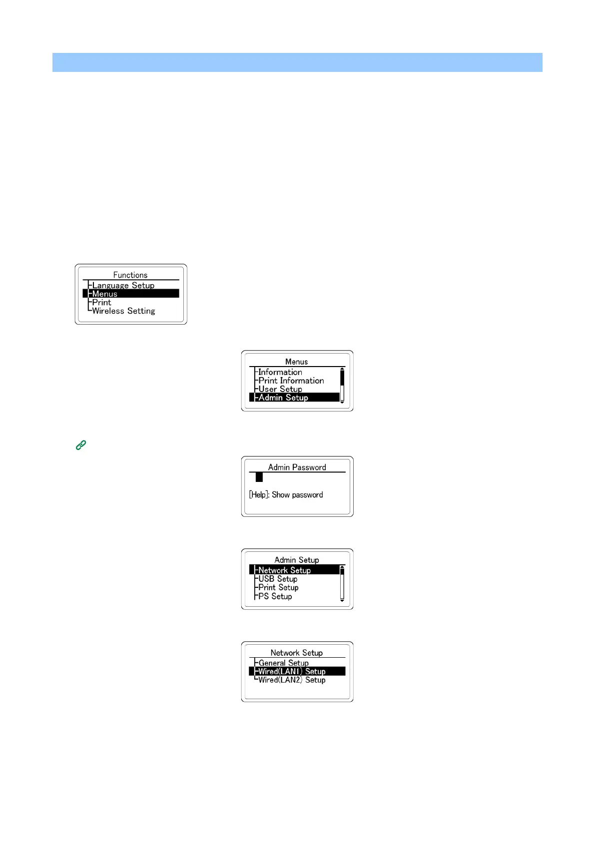 If you are using an extended wired LAN module, please read "Wired(LAN2) Setup" instead of "Wired(LAN1)