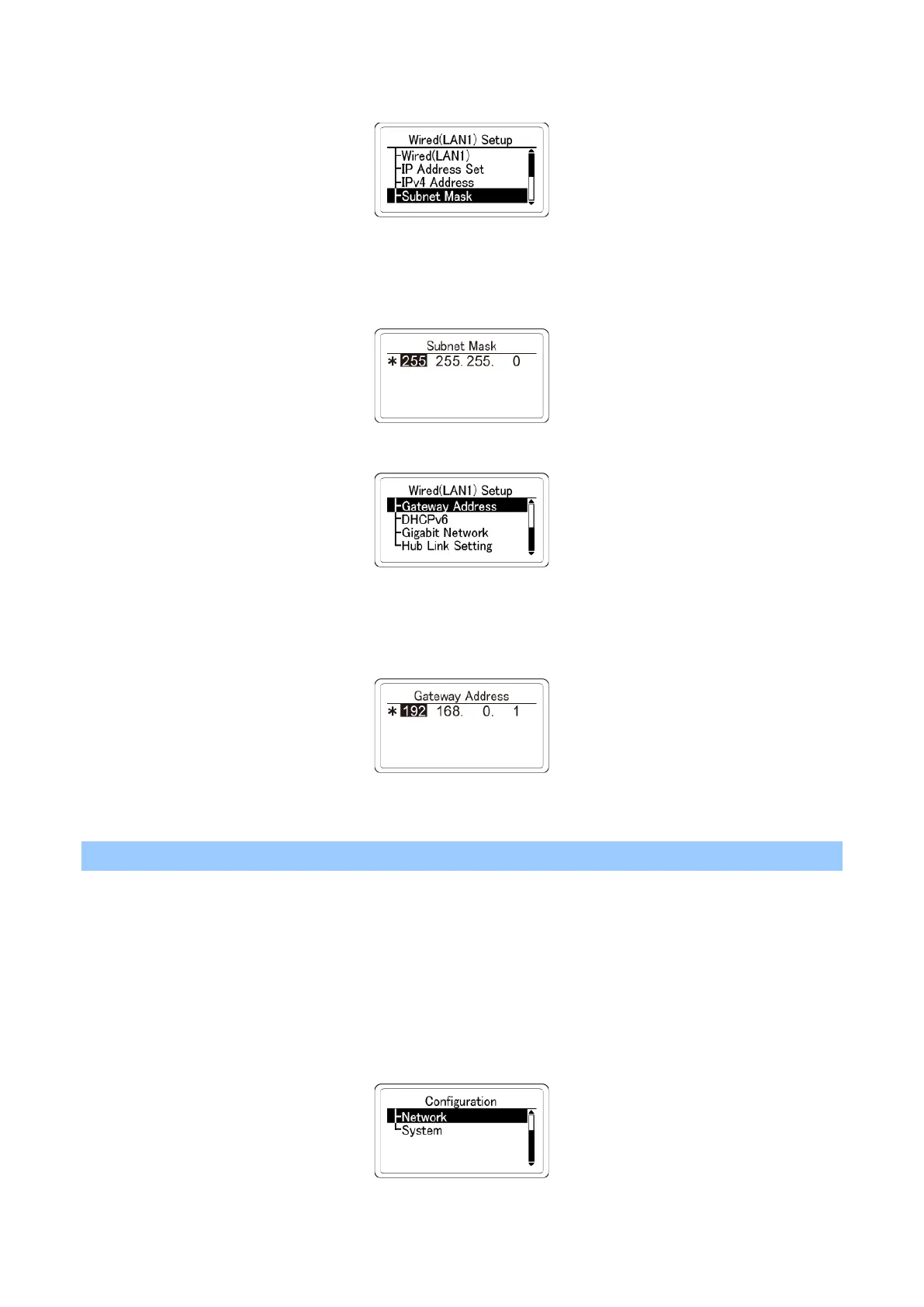 Set the gateway address in the same way as the IP address. After all the digits have been set,