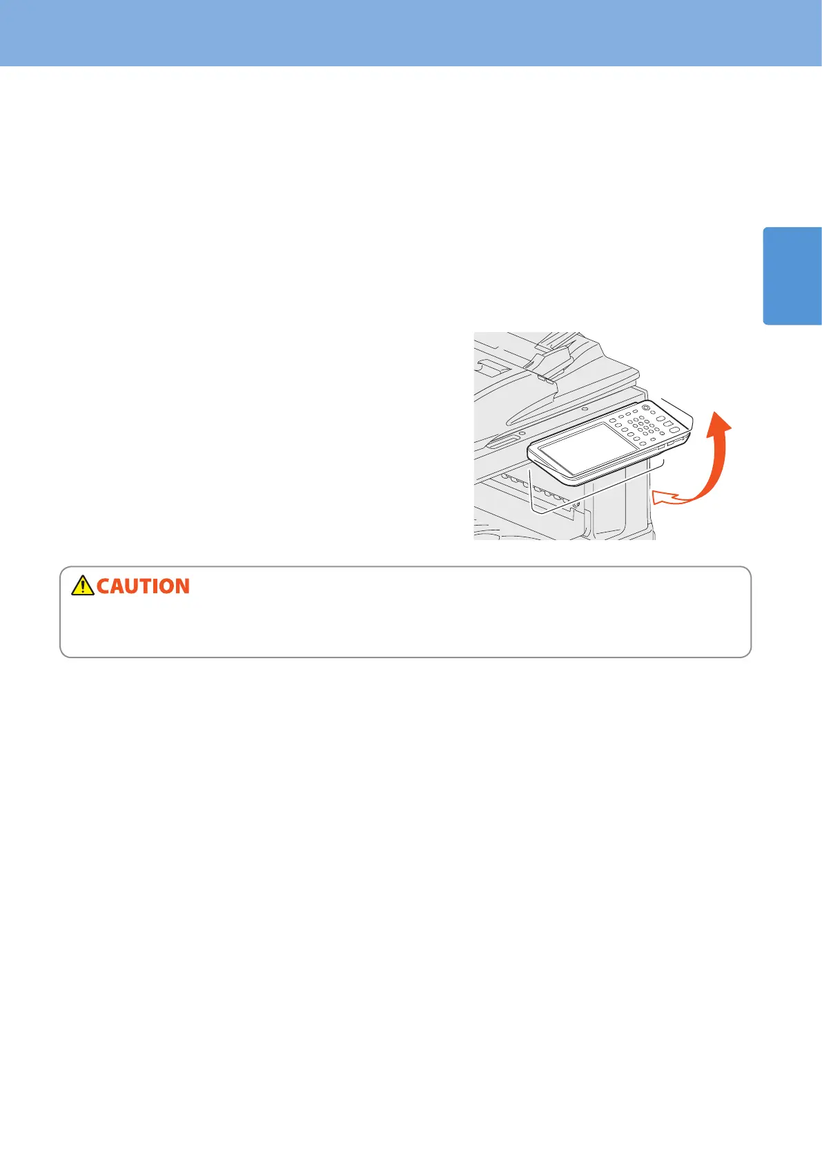 When changing the angle of the control panel, be careful not to catch your hands in the gap between the equipment and