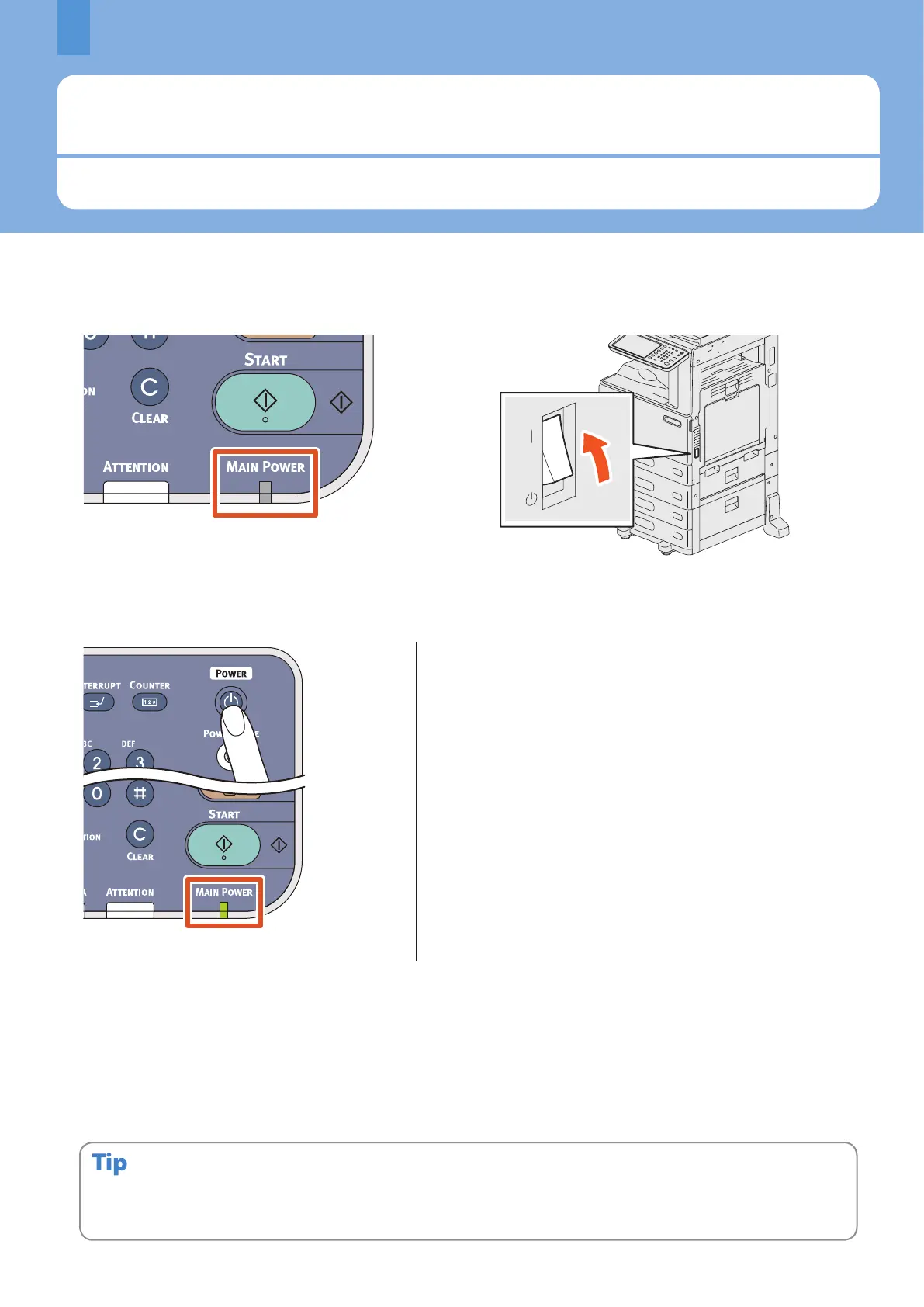 When the MAIN POWER lamp (green) on the control panel lights: