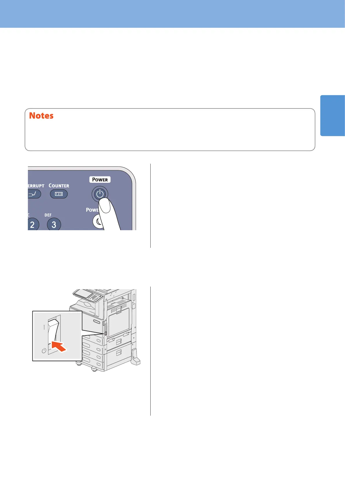 (If the equipment is shut down while any of the above lamps is blinking, jobs in progress such as FAX reception will be