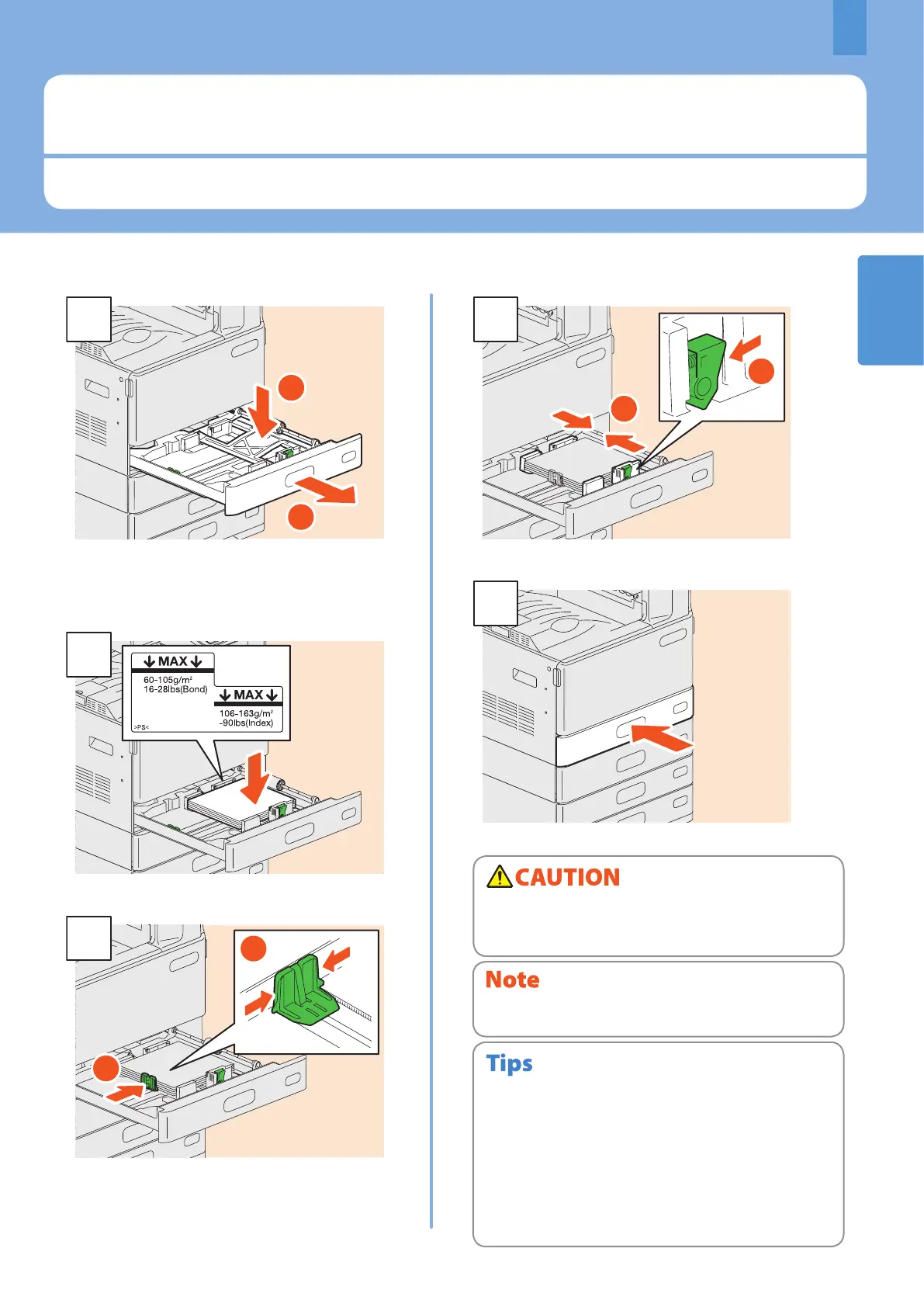 This section explains how to set paper and originals. Incorrect setting causes image skews or paper misfeeds. Follow the