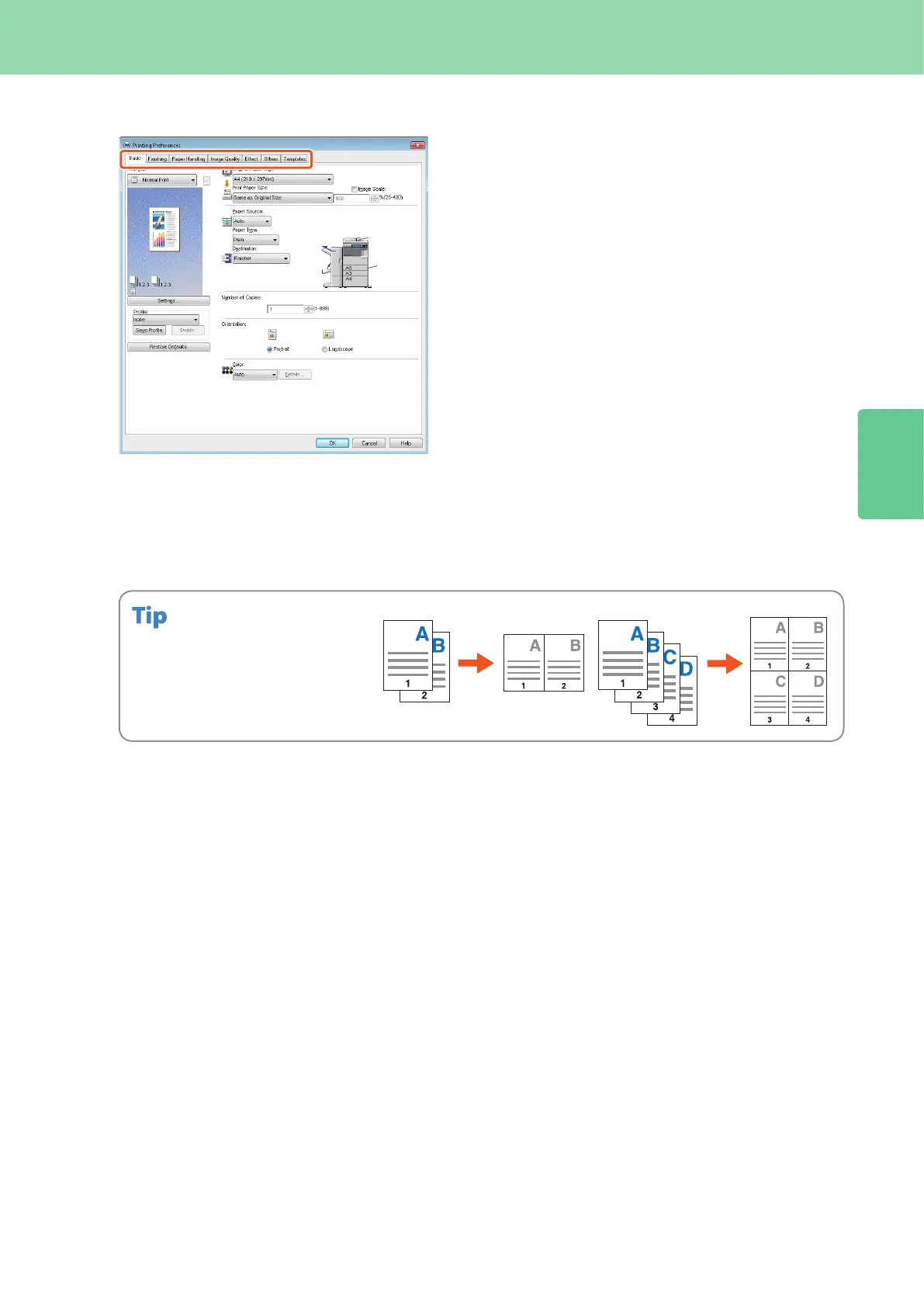 Click the [Finishing] tab. If the Finisher is installed, “Staple” or “Hole Punch” can be selected.