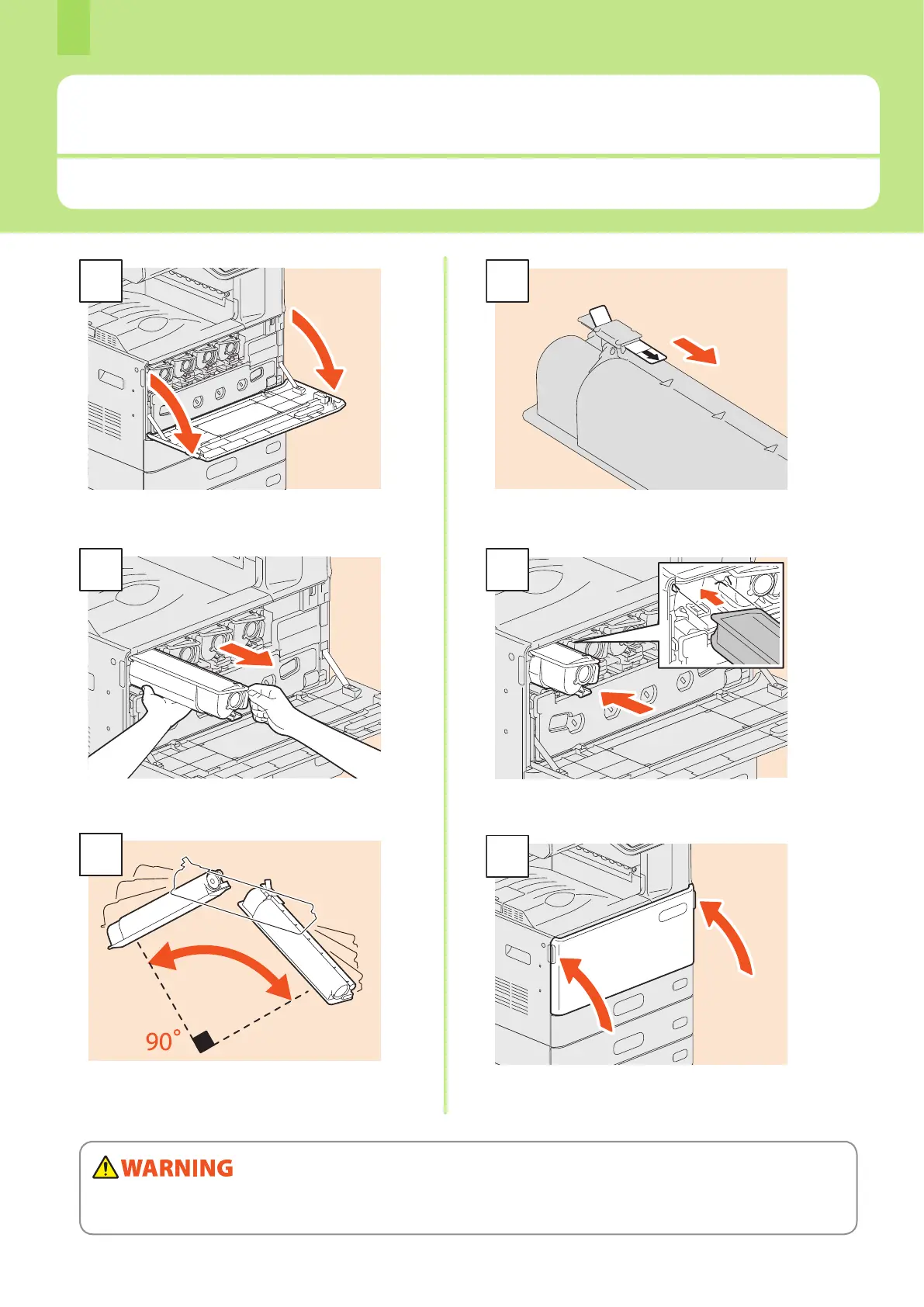 When “Install new *** toner cartridge” appears on the touch panel, replace the toner cartridge according to the following