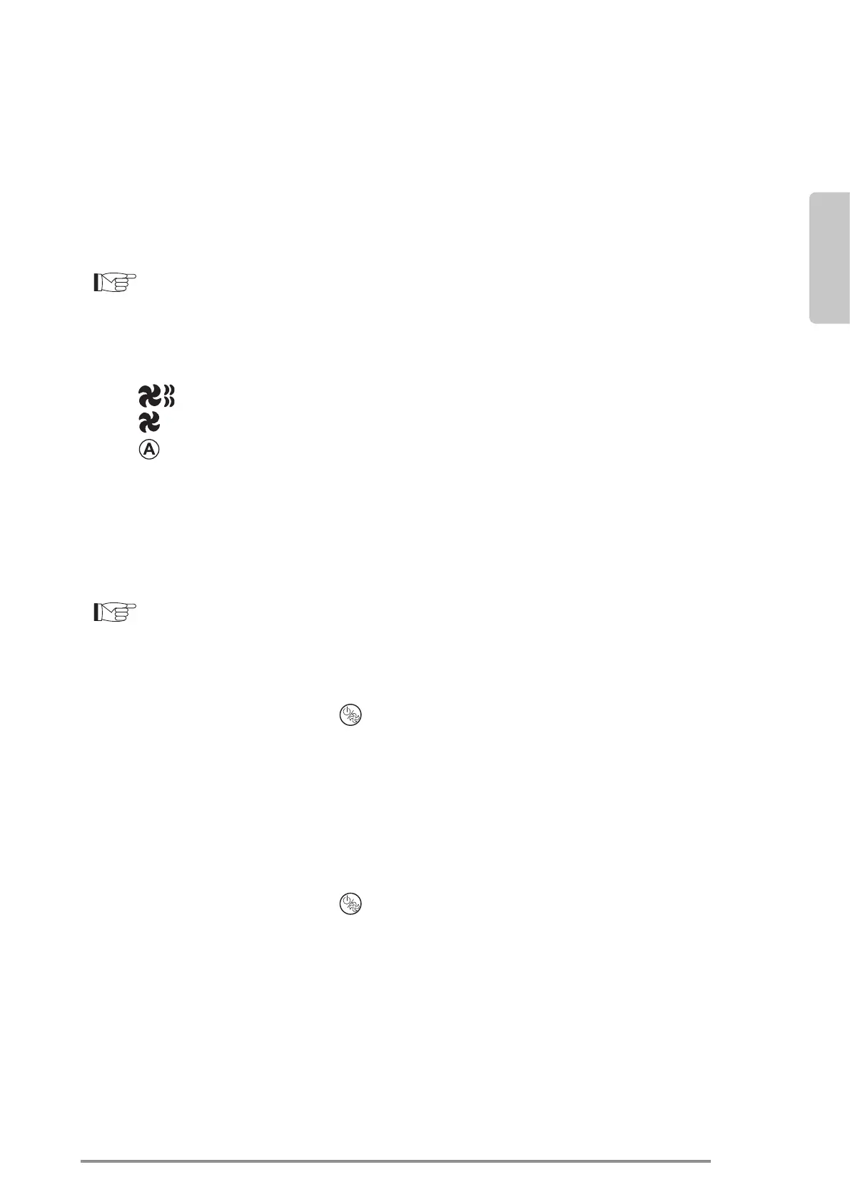 b. Under this operating mode, the internal fan is always on and it is possible to select the desired speed of