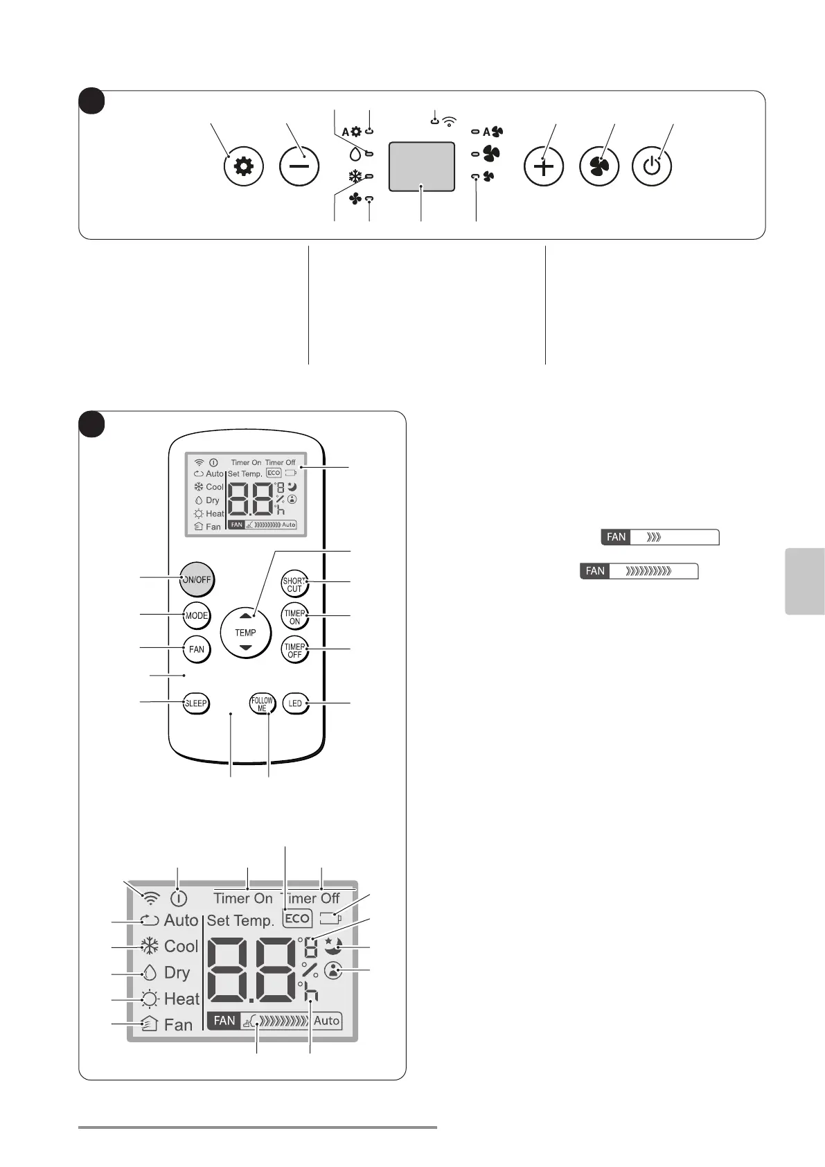 • D7: Wskazanie prędkości wentylatora (patrz „B3”)