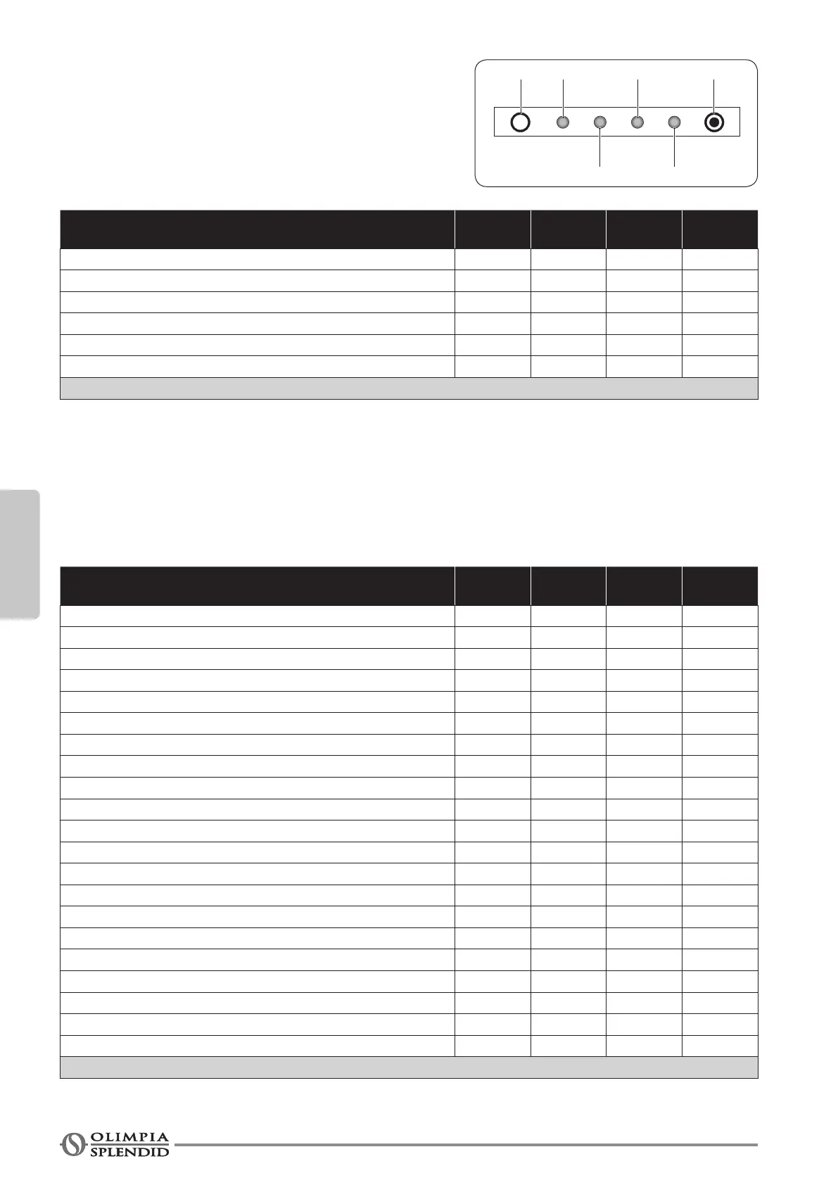 1-9: Anzahl der Blinkzeichen (1 Blinkzeichen = 1 Sekunde an, 1 Sekunde aus) - 0: LED ausgeschaltet - x: neutral