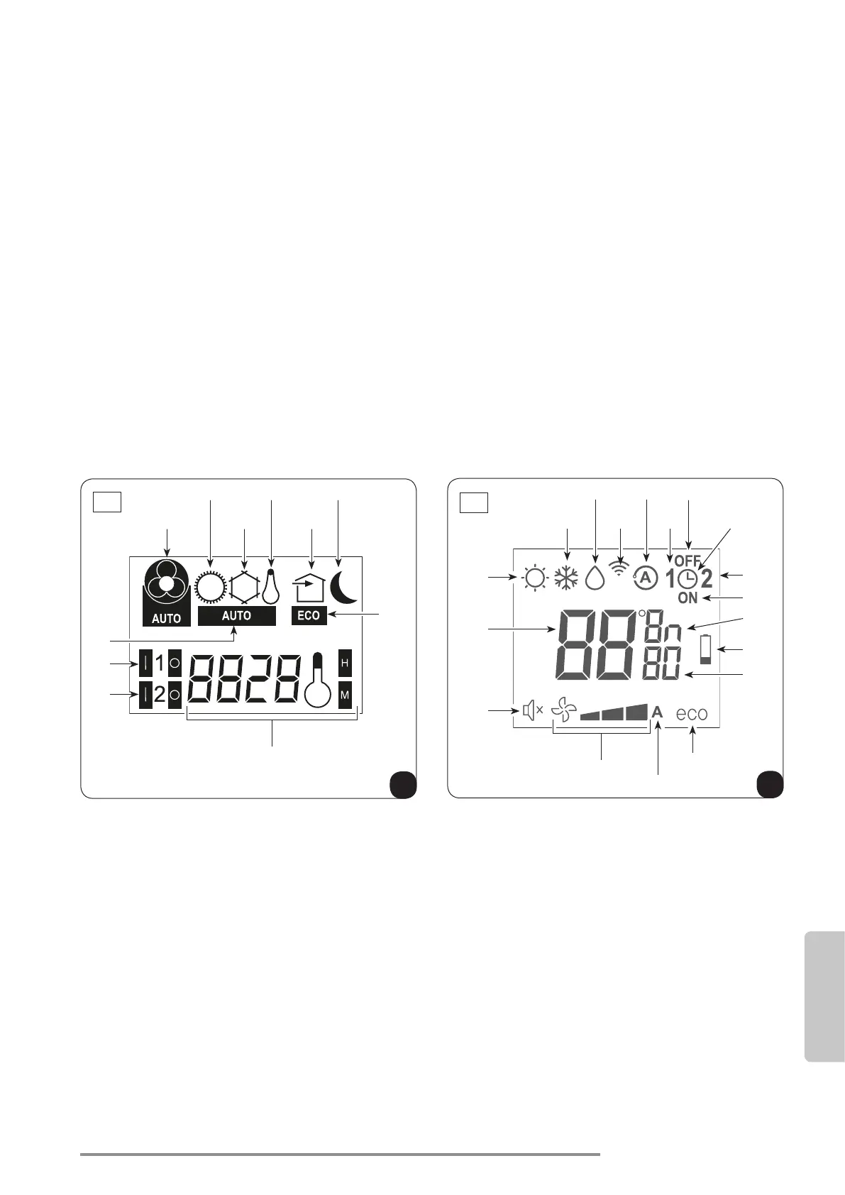 3.4.2 - Beskrivning av fjärrkontrollens display (Fig. 40-41)