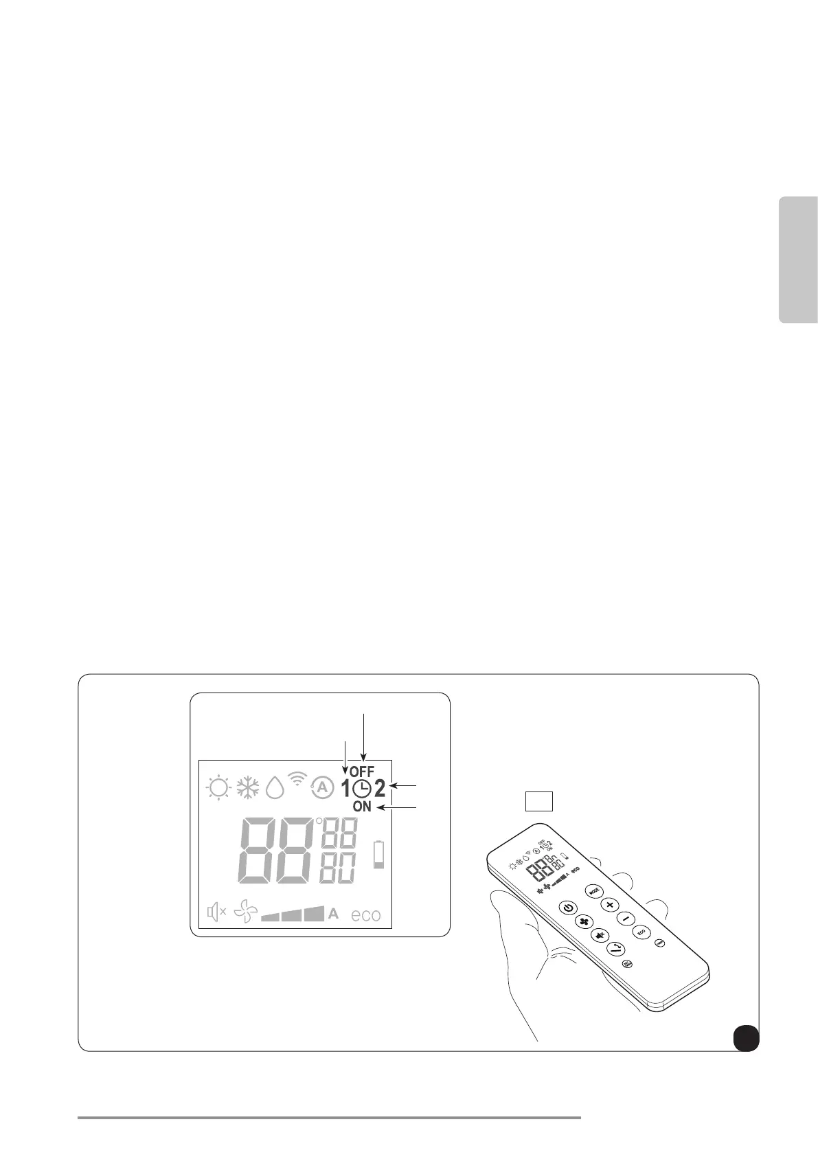 b. Use keys B7 (+ and -) to increase or decrease the hour in which you wish the air conditioner activates.