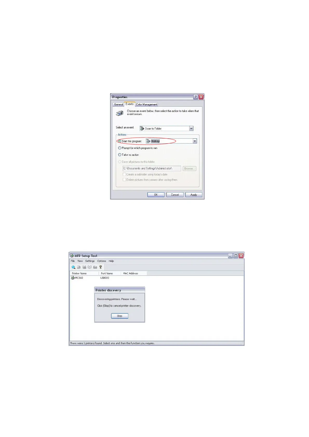(h) Repeat steps e to g for each event, e.g. Scan to Application, E-mail, Folder and