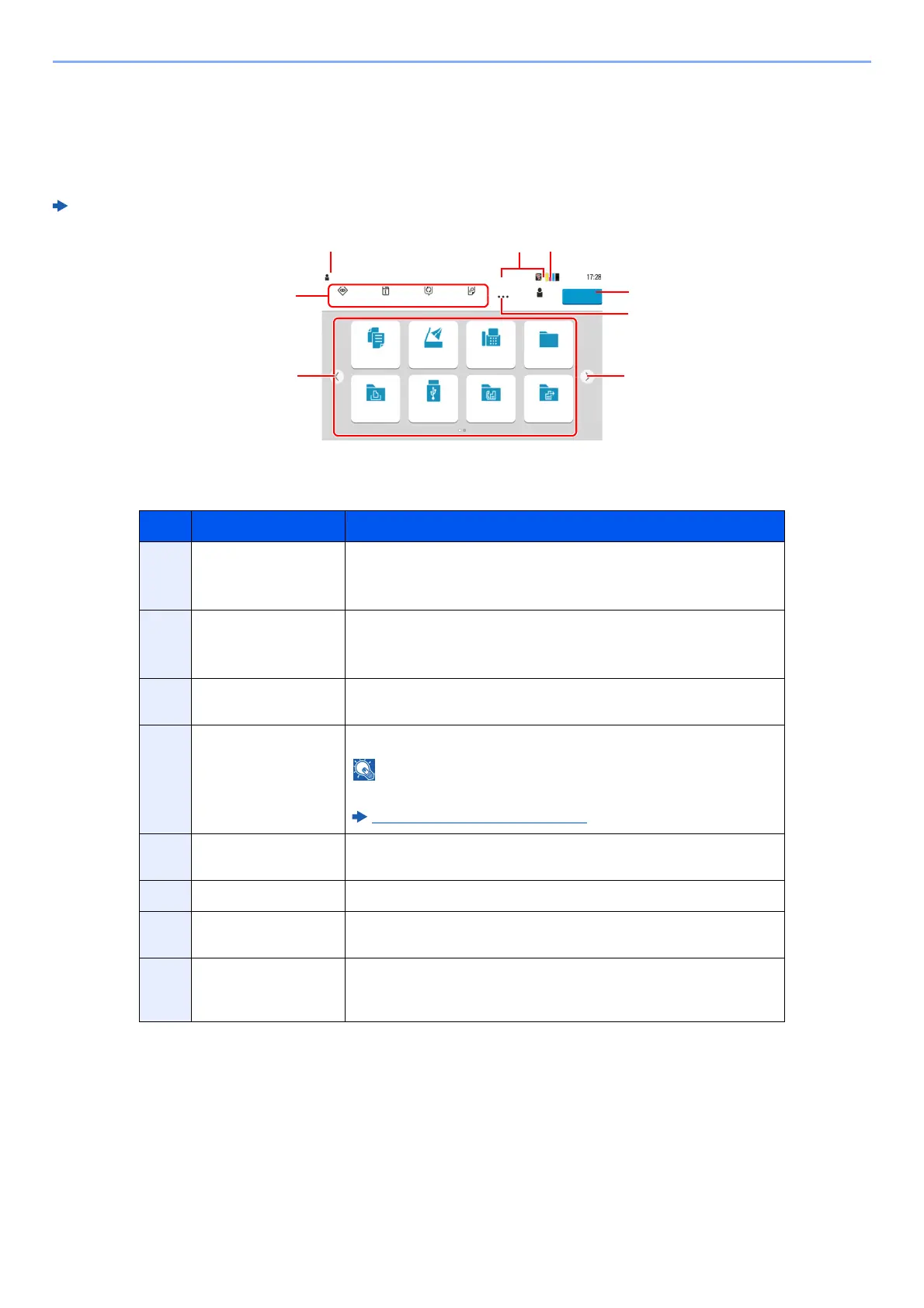 This screen is displayed by selecting the [Home] key on the operation panel. Selecting an icon will display the