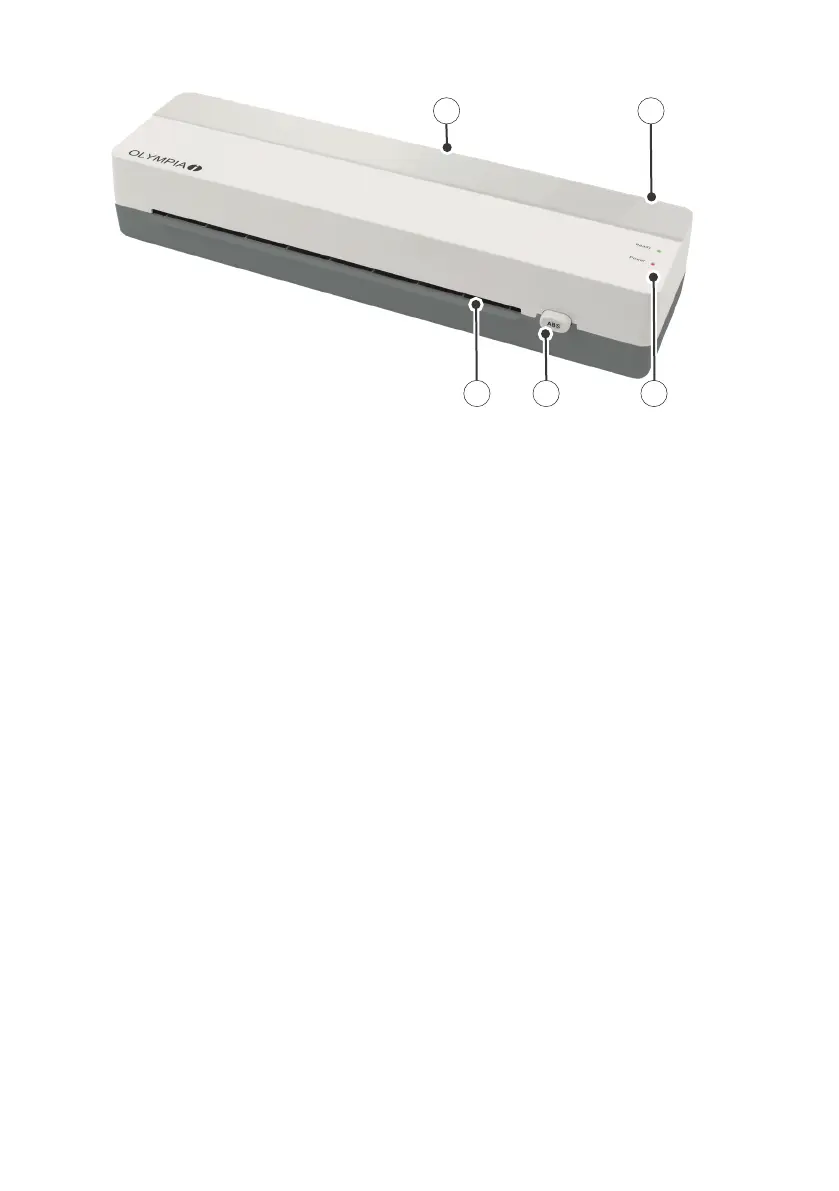 2 Schakelaar (aan/uit) 5 Controlelampjes (voeding / gereed)