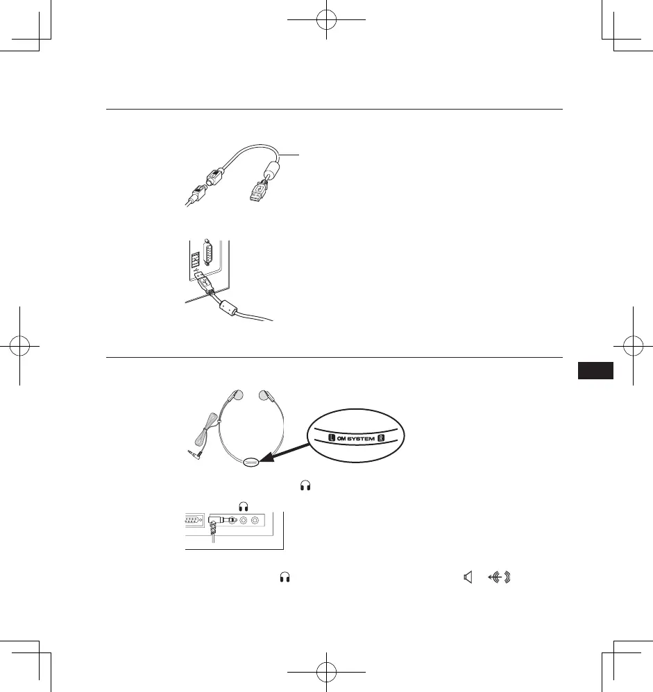E103 ir stereo austiņas. Atskaņojot stereo skaņu, valkājiet austiņas pareizi, ievērojot atzīmes L (kreisā) un R (labā).