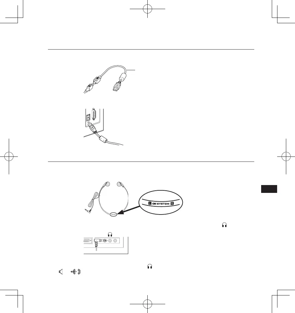 E103 jest zestawem słuchawkowym stereo. Wprzypadku odtwarzania dźwięku stereo słuchawki należy założyć