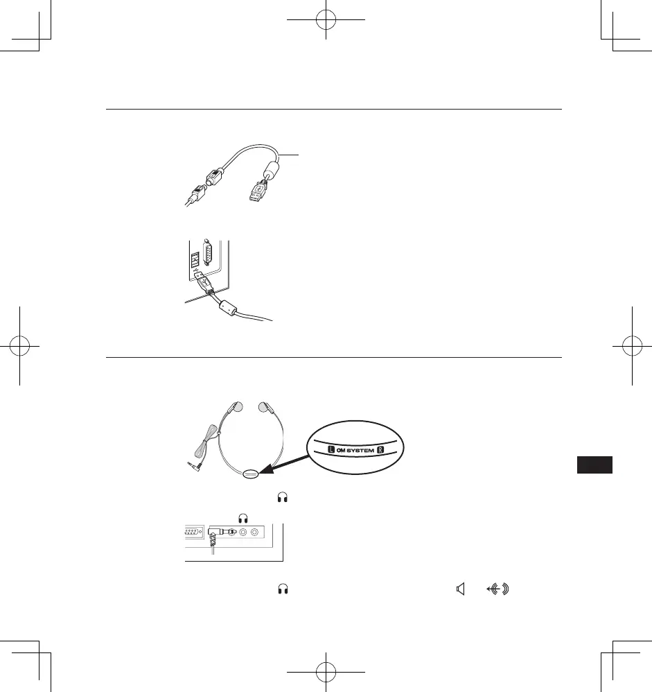 E103 är ett stereoheadset. Bär hörlurarna ordentligt vid uppspelning av stereoljud och observera L- och