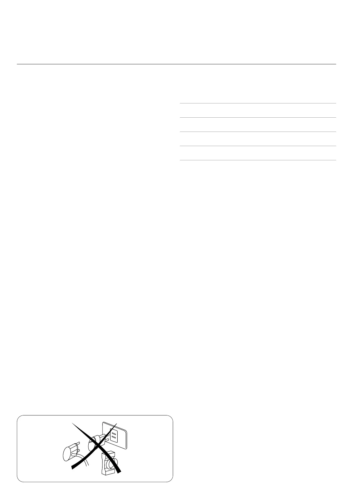 • Do not use extension cords, adaptors, or multiple socket outlets,