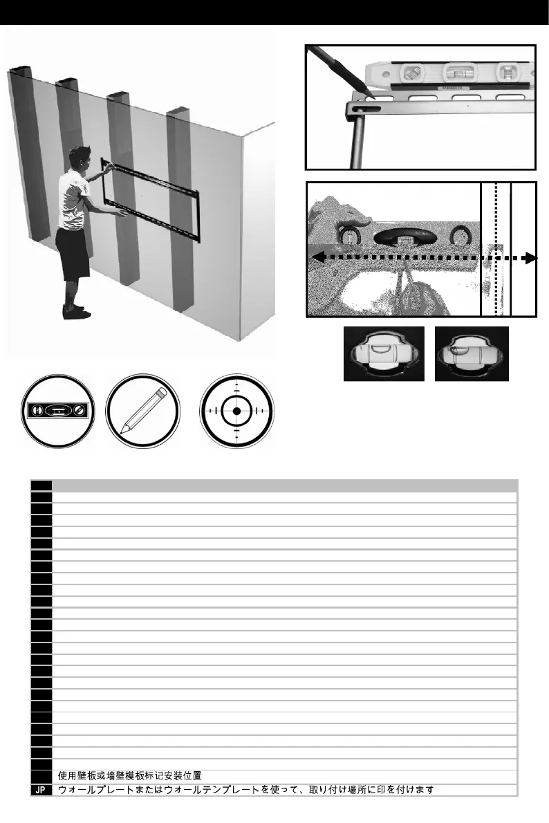 FR Utilisez la plaque ou le gabarit mural pour marquer les emplacements de montage
