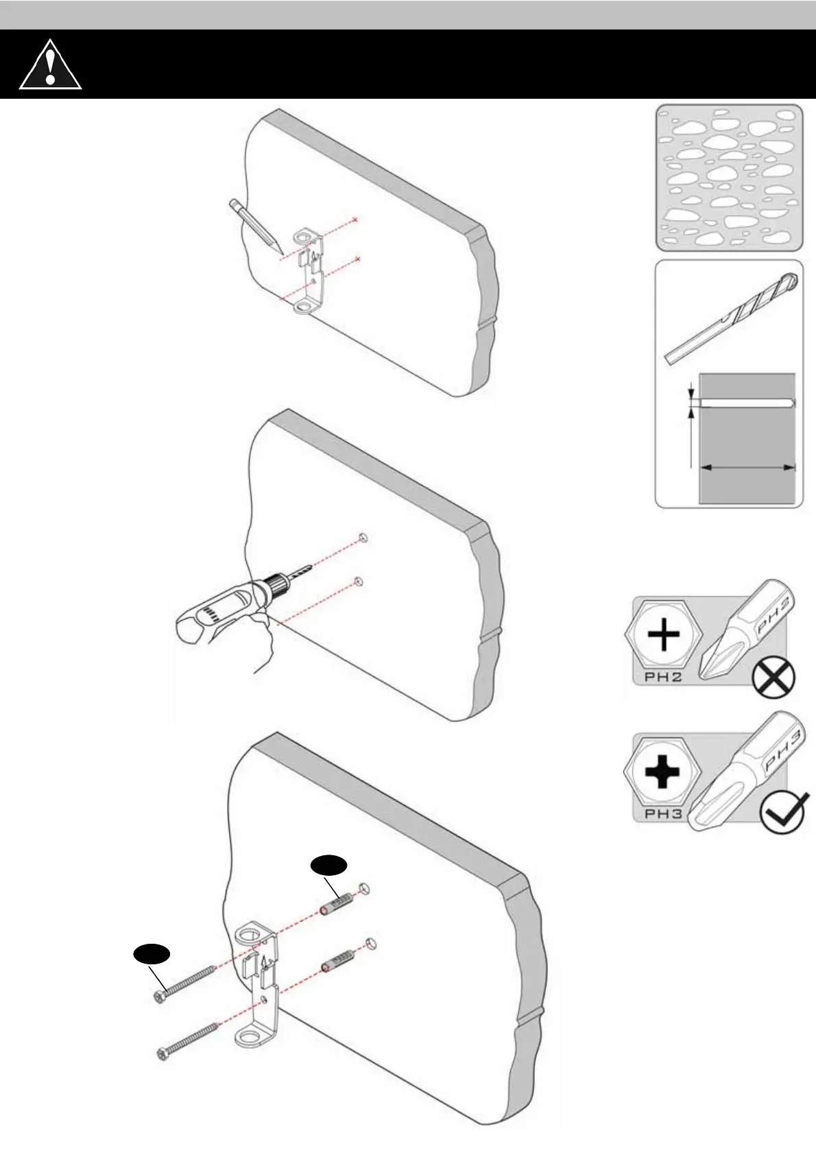 IMPORTANT! WHEN TIGHTENING WALL SCREW (PART W-A), USE A PHILLIPS HEAD #3