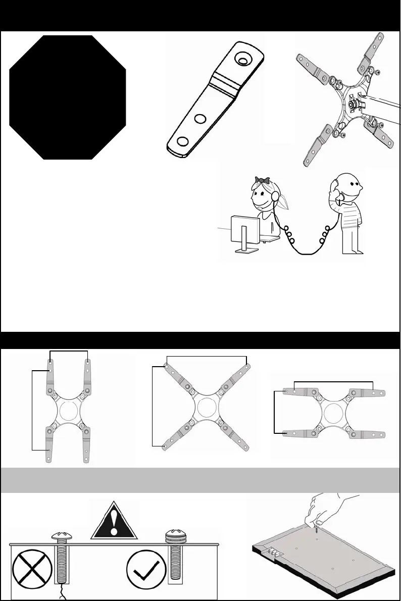 WARNING! PLEASE SELECT THE PROPER SCREW LENGTH FOR YOUR FLAT PANEL